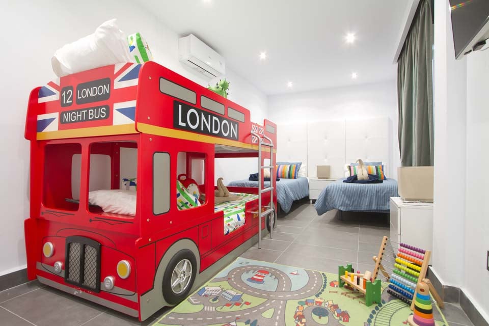 Enkelsängar, våningssängar, smart-TV, luftkonditionering