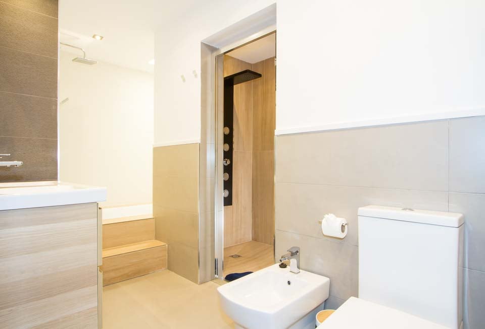 Badkar, Bubbelbadkar, Dusch, Handfat, Dubbel, Dubbla handfat, Toalett, Bidé