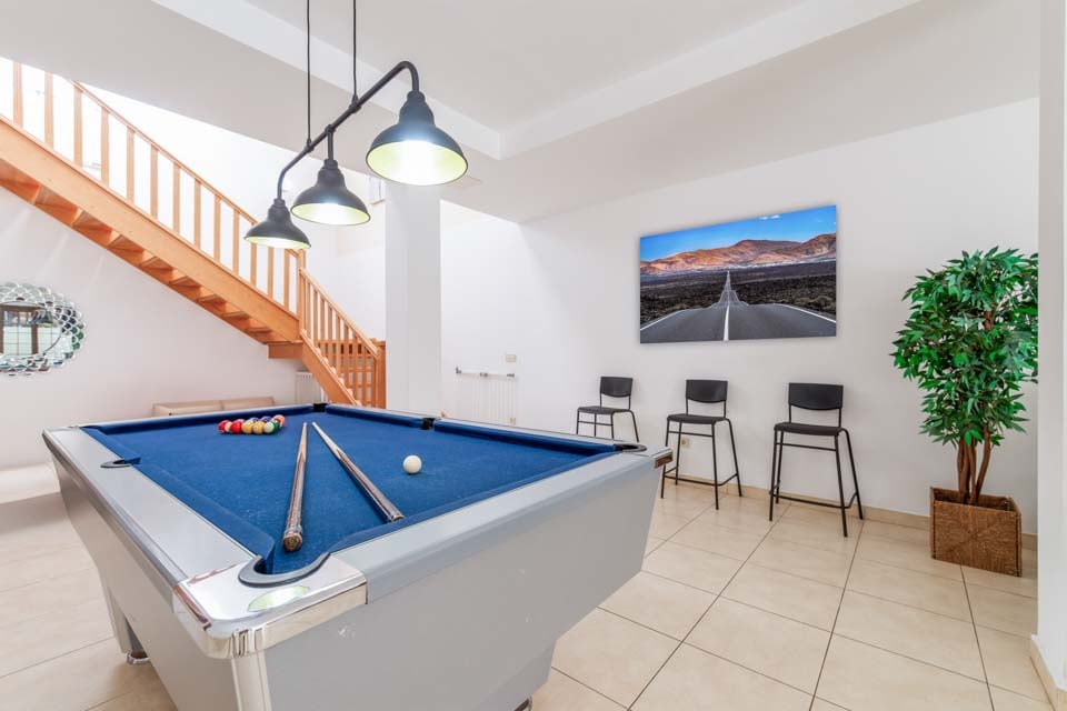 Bekväm sittgrupp, luftkonditionering, smart-TV, biljardbord, dörrar till terrass