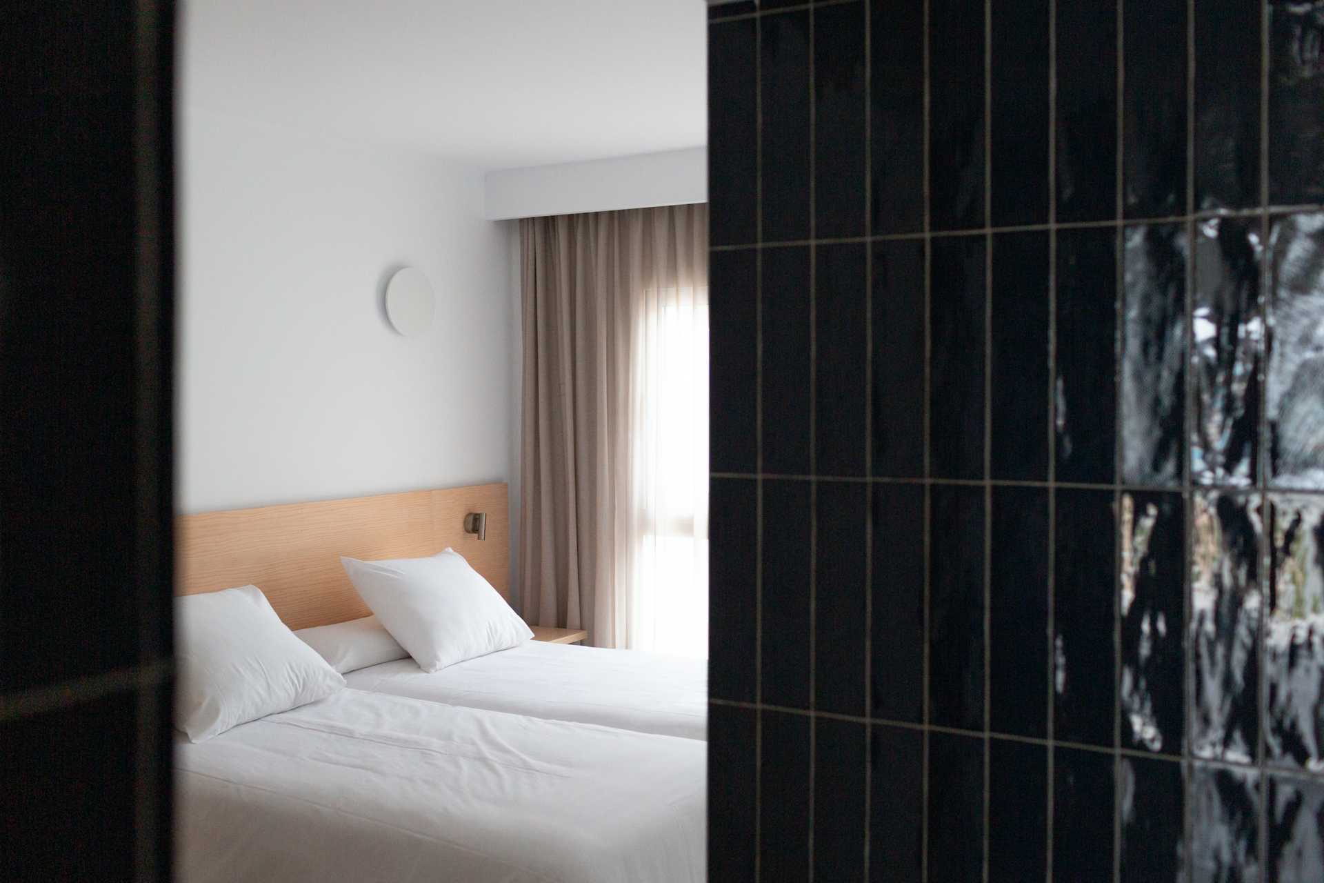 Renoverad trerumslägenhet med terrass eller balkong och poolutsikt. Två sovrum och kombinerat vardagsrum med minikök. En dubbelsäng eller två enkelsängar i varje sovrum. Möjlighet till extrabädd i bäddsoffa. Minikök med kylskåp och liten frys, mikrovågsugn, kaffebryggare, vattenkokare, brödrost och enkel köksutrustning. Välkomstkit. Wifi och luftkonditionering ingår. Deponering mot avgift. Tv med internationella kanaler. Poolhanddukar. Badrockar. Hårtork. Badrum med dusch och wc. Städning 7 ggr/vecka. Barn under två år räknas in i maxantalet personer i lägenheten.