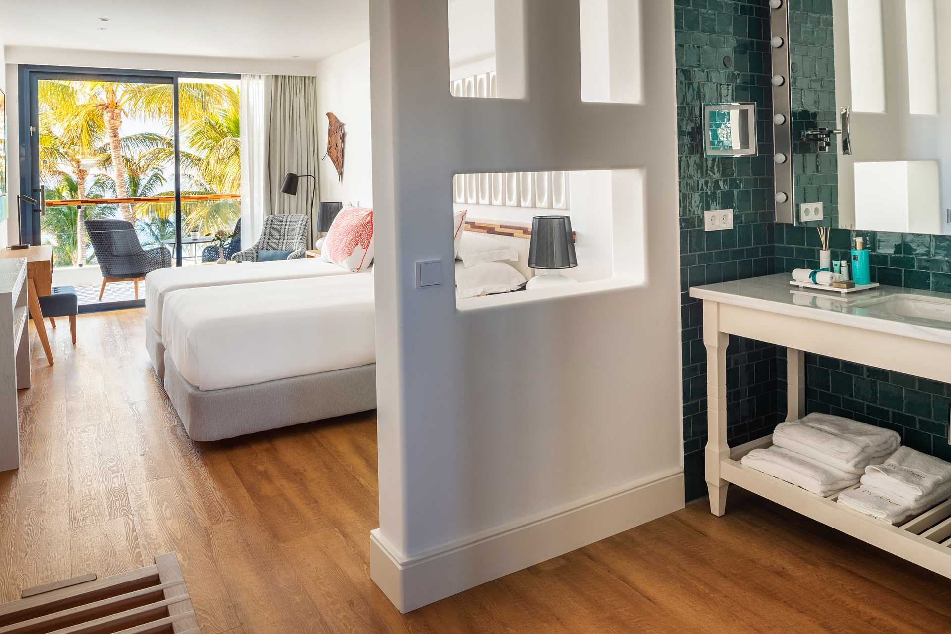 Juniorsvit superior med balkong och havsutsikt. På balkongen finns en jacuzzi och solstolar. Två enkelsängar. Kuddmeny. Wifi, luftkonditionering och deponering ingår. Kylskåp. Vattenkokare samt kaffe och te. Tv med internationella kanaler. Hårtork. Badrockar och tofflor. Badrum med dusch och wc. Städning 7 ggr/vecka.