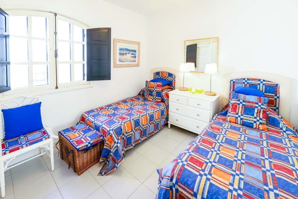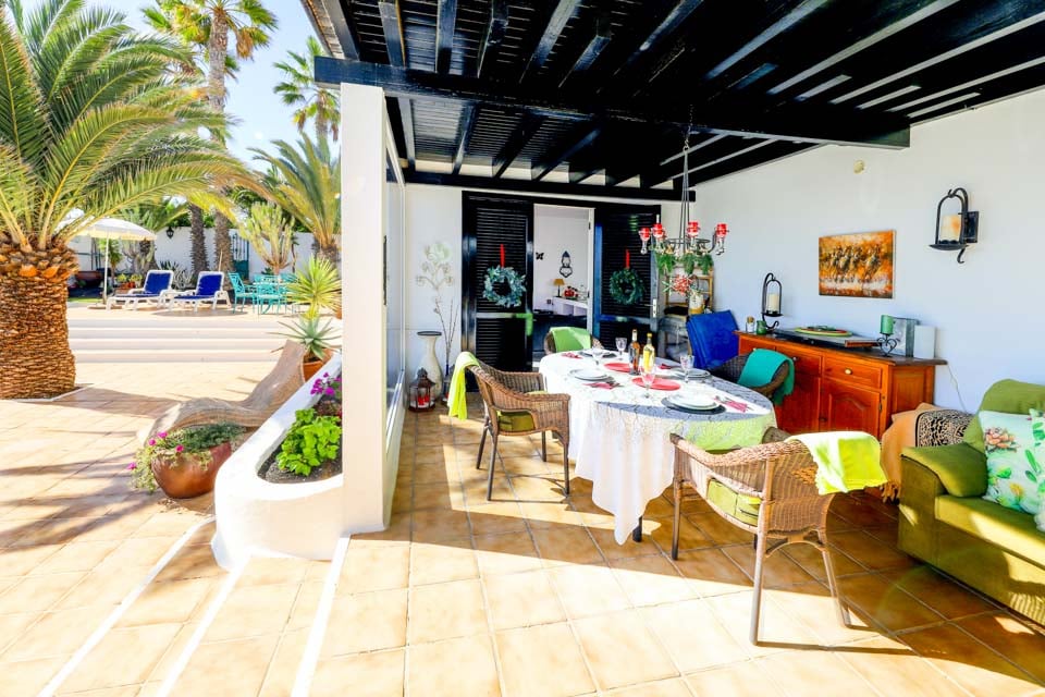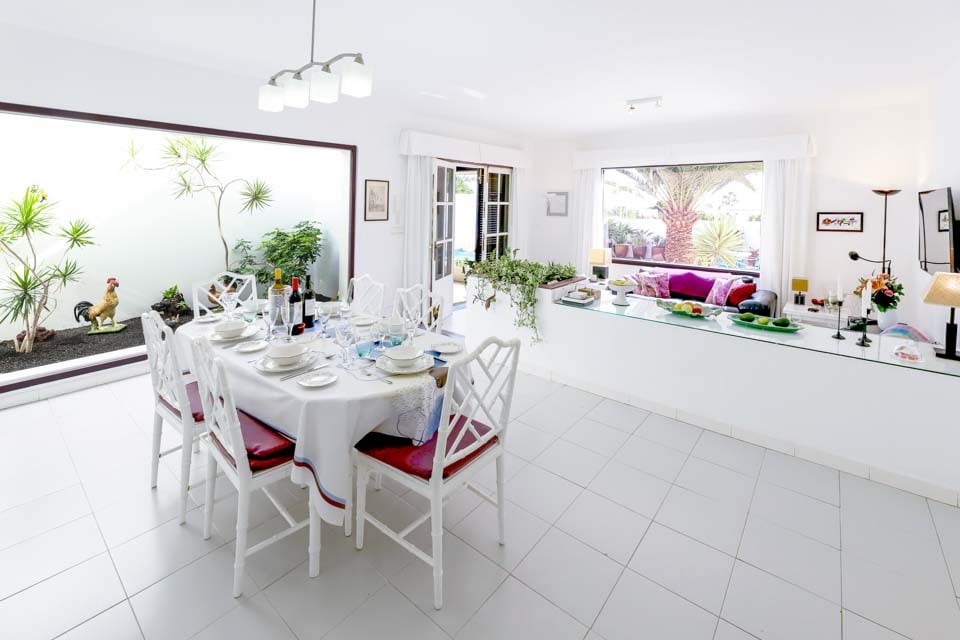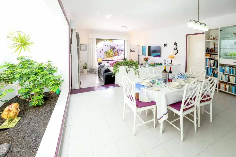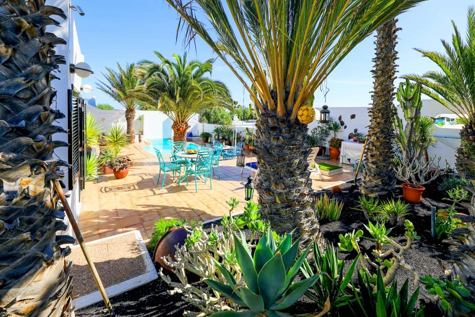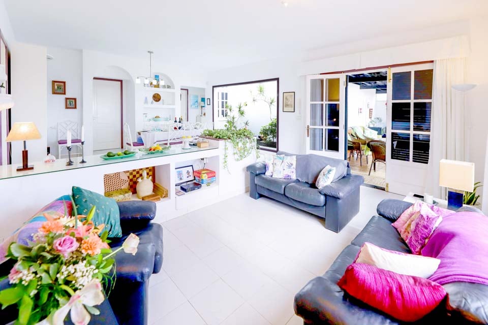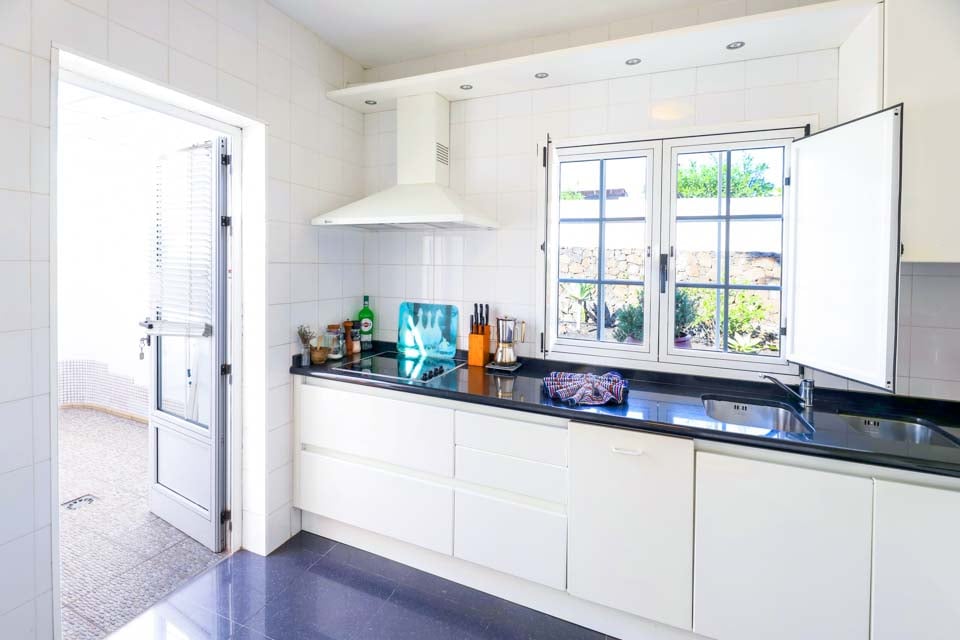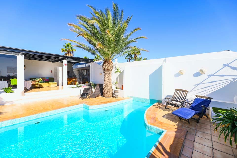 Villa Jasmin är en unik villa, belägen i Puerto del Carmen, denna villa med tre sovrum är ett måste att se. Den fantastiska terrakottaterrassen är där vi garanterar att du kommer att tillbringa större delen av dina dagar, omgiven av en vitkalkad vägg och full av exotiska växter, denna terrass är din egen bit av ett medelhavsparadis. Den glittrande poolen är uppfriskande på en varm solig dag, varför inte ta ett dopp och plaska runt med barnen, eller njuta av en solstund medan du njuter av din soldränkta dag vid poolen. För de som älskar att äta och dricka gott finns det flera uteserveringar på den öppna terrassen, från färgglada bord till mosaik-bistroserviser på innergården. För matälskare finns det till och med en tegelbyggd grill, perfekt för att grilla några läckra godsaker till en lätt lunch. Om du föredrar lite skugga finns det ett trädgårdsrum precis vid poolterrassen. Denna mysiga oas är perfekt för avkoppling i skuggan, med en bekväm soffa och rottingmöbler. Härifrån kan du komma åt resten av huset genom en dörr som leder in i det öppna vardagsrummet och matsalen, som är ljust och luftigt, med moderna möbler och en platt-TV. Köket är fullt utrustat med alla dina nödvändigheter för matlagning, vilket gör matlagningen till en barnlek på din semester med självhushåll. Det finns totalt tre sovrum, ett master bedroom med ett fantastiskt badrum med dubbla handfat och badkar, ytterligare ett dubbelrum med dusch och ett tvåbäddsrum med tillgång till ett separat familjebadrum.