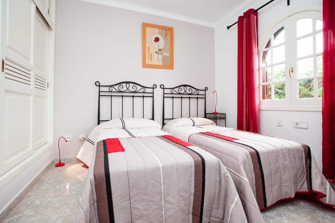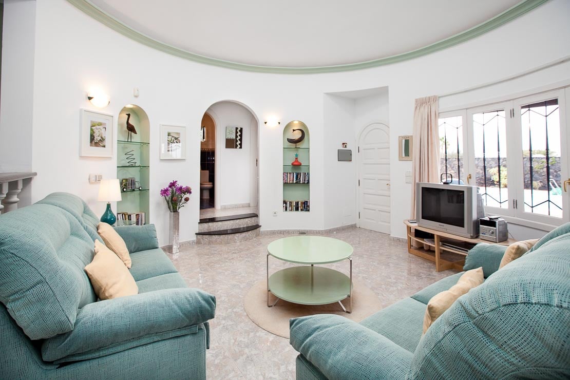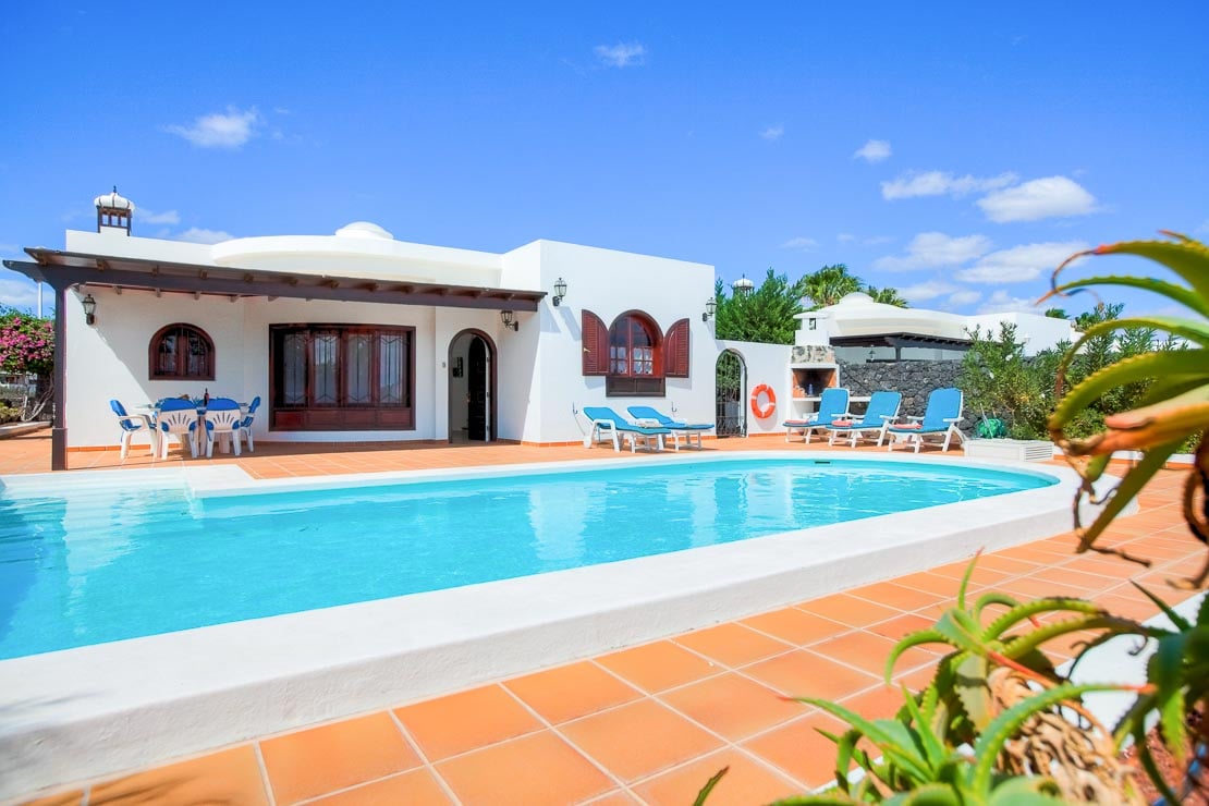 Denna förtjusande fristående villa är bekvämt belägen bara 460 meter från stranden, butikerna och restaurangerna som utgör den populära "stripen" i Puerto del Carmen. Villan har bekväma, traditionella möbler och är välutrustad i alla utrymmen. Underhållning erbjuds via satellit-TV med engelska kanaler och DVD-spelare. Det bekväma vardagsrummet och matplatsen har öppen planlösning mot ett välutrustat kök med frukostbar. Utomhus finns en stor uppvärmd* pool med romerska trappor omgiven av täckta och öppna solterrasser. Utemöbler finns för att njuta av måltider utomhus samt solstolar och ett parasoll.