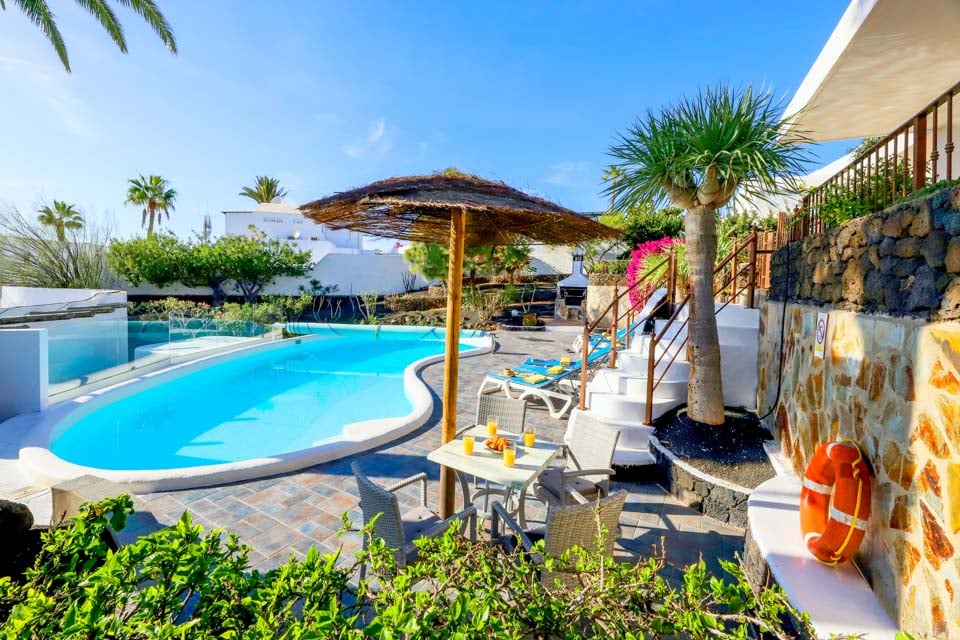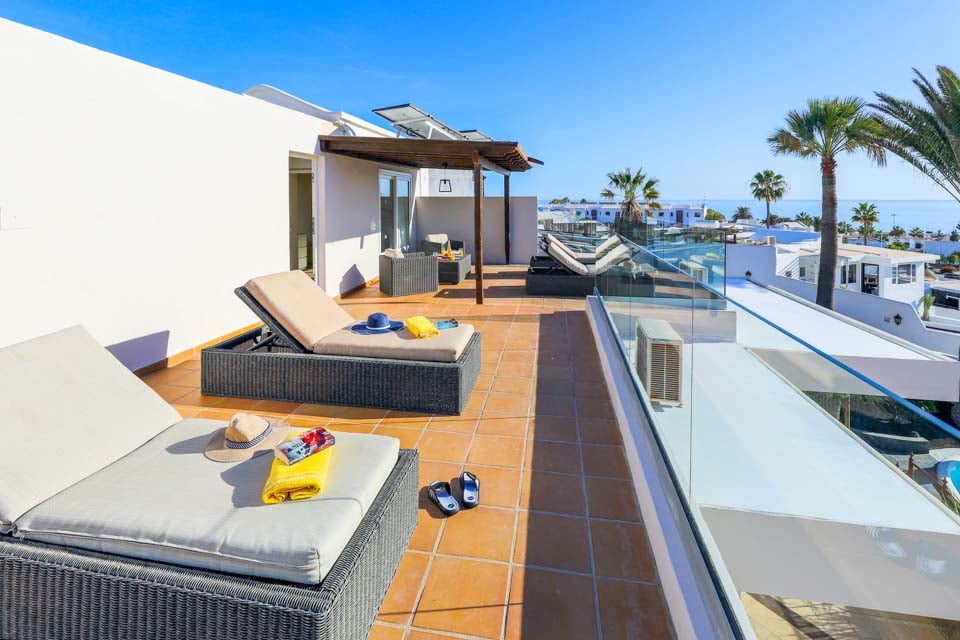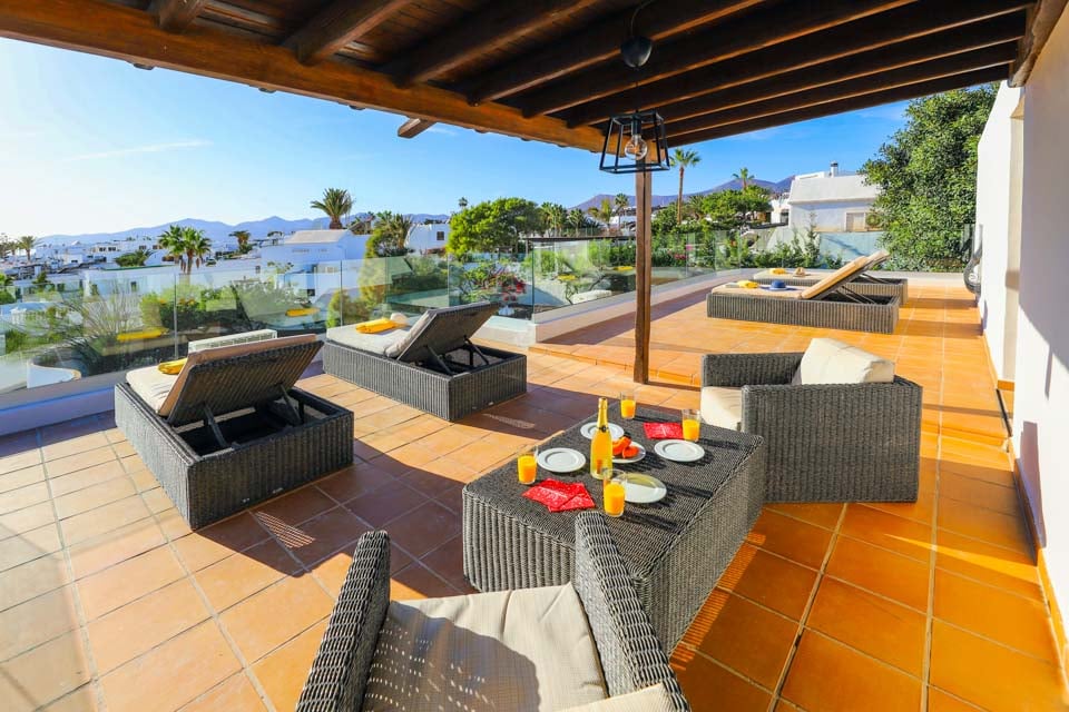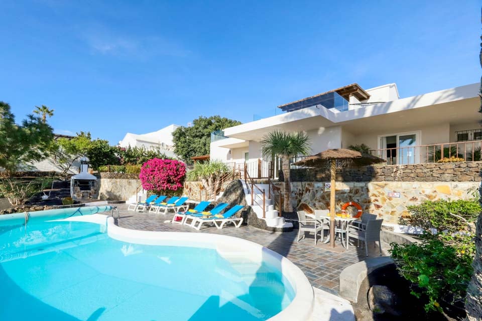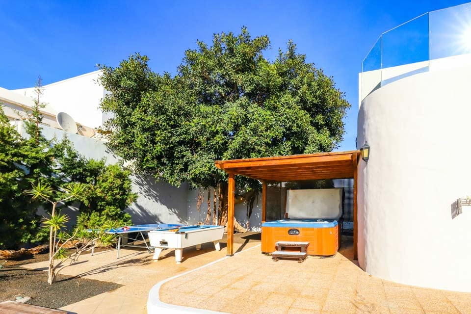 Villa Cilla är en förtjusande villa, belägen mindre än 15 minuters promenad från den livliga och populära badorten Puerto del Carmen. Beläget på en privilegierad upphöjd tomt är utsikten härifrån verkligen enastående. Vi föreställer oss att många dagar och kvällar kommer att tillbringas här i villornas bubbelpool, med ett glas vin till hands, medan vi beundrar den fantastiska utsikten medan vi övervakar de yngre familjemedlemmarna som plaskar runt i den större än genomsnittet privata poolen nedanför. Interiören i denna fantastiska villa är ljus, luftig och särskilt rymlig, perfekt för stora familjer eller grupper av vänner som reser tillsammans. Om du vill ge dig ut från denna fantastiska utsiktspunkt rekommenderar vi starkt att du tillbringar några kvällar i Puerto del Carmen, där du hittar ett utbud av utmärkta restauranger, barer och butiker, särskilt i närheten av det gamla hamnområdet. För er som gillar långa kvällspromenader sträcker sig den breda gågatan några kilometer längs denna natursköna och livliga strandlinje.