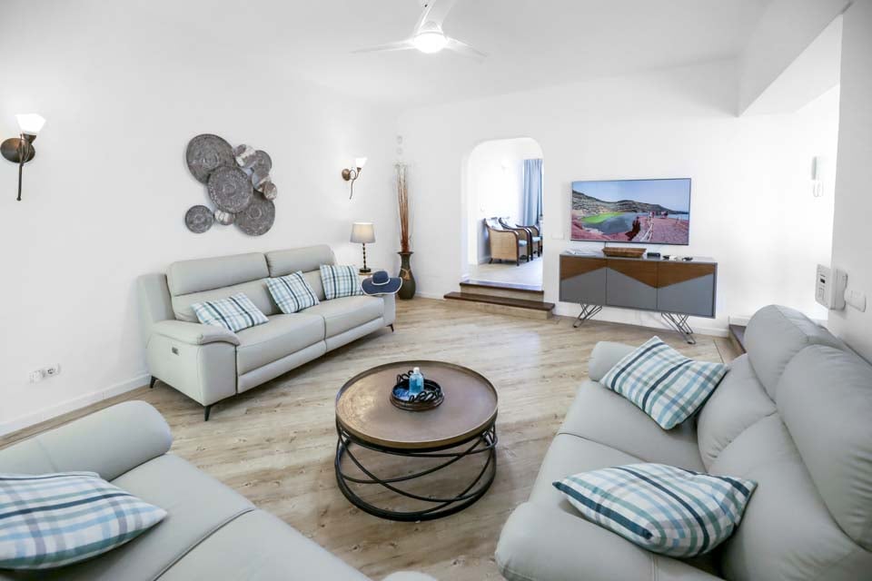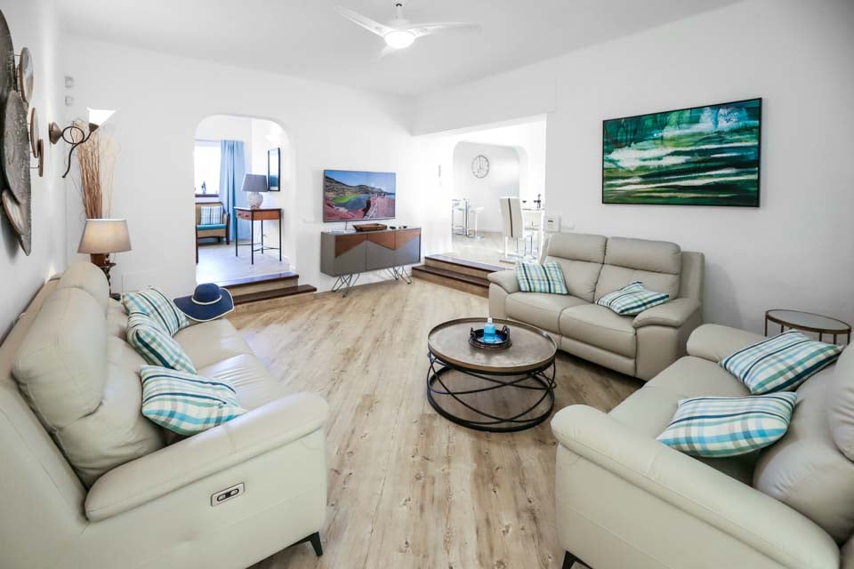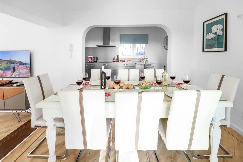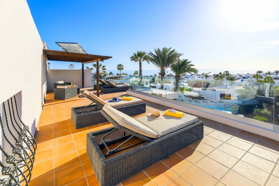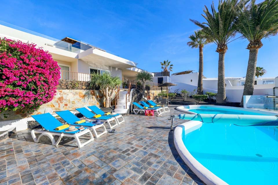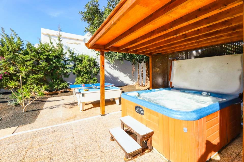 Villa Cilla är en förtjusande villa, belägen mindre än 15 minuters promenad från den livliga och populära badorten Puerto del Carmen. Beläget på en privilegierad upphöjd tomt är utsikten härifrån verkligen enastående. Vi föreställer oss att många dagar och kvällar kommer att tillbringas här i villornas bubbelpool, med ett glas vin till hands, medan vi beundrar den fantastiska utsikten medan vi övervakar de yngre familjemedlemmarna som plaskar runt i den större än genomsnittet privata poolen nedanför. Interiören i denna fantastiska villa är ljus, luftig och särskilt rymlig, perfekt för stora familjer eller grupper av vänner som reser tillsammans. Om du vill ge dig ut från denna fantastiska utsiktspunkt rekommenderar vi starkt att du tillbringar några kvällar i Puerto del Carmen, där du hittar ett utbud av utmärkta restauranger, barer och butiker, särskilt i närheten av det gamla hamnområdet. För er som gillar långa kvällspromenader sträcker sig den breda gågatan några kilometer längs denna natursköna och livliga strandlinje.