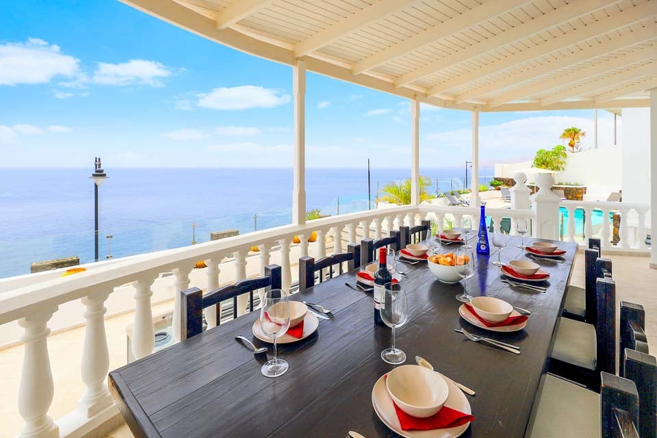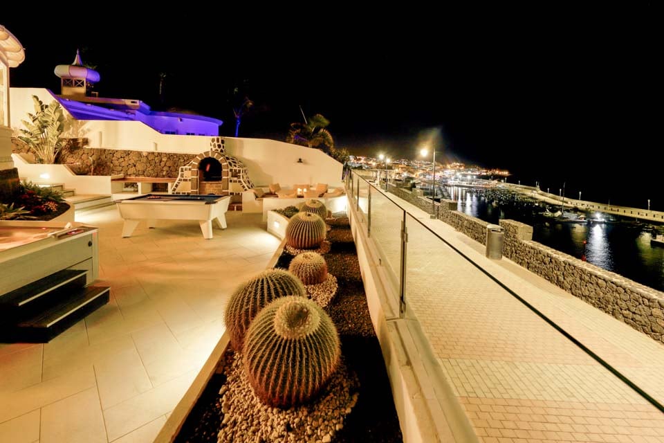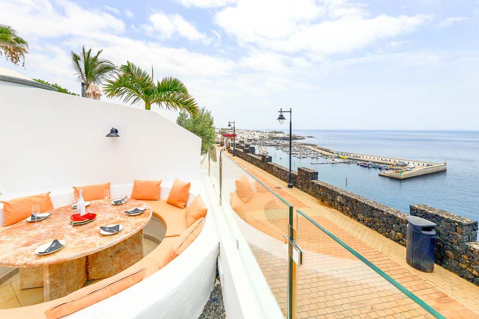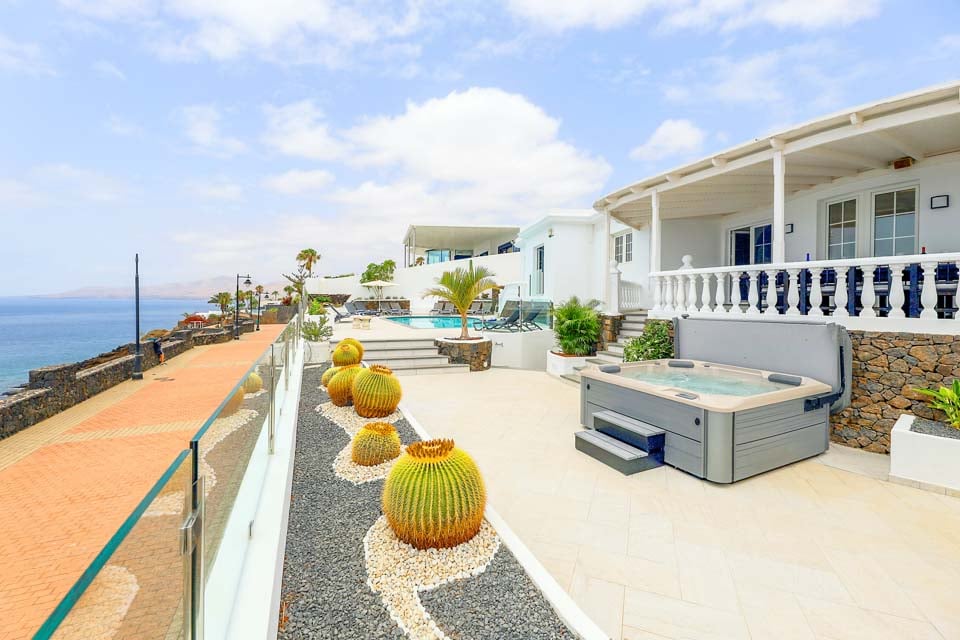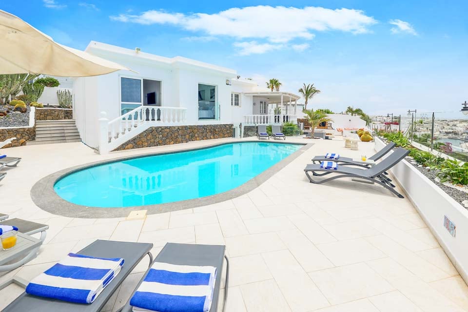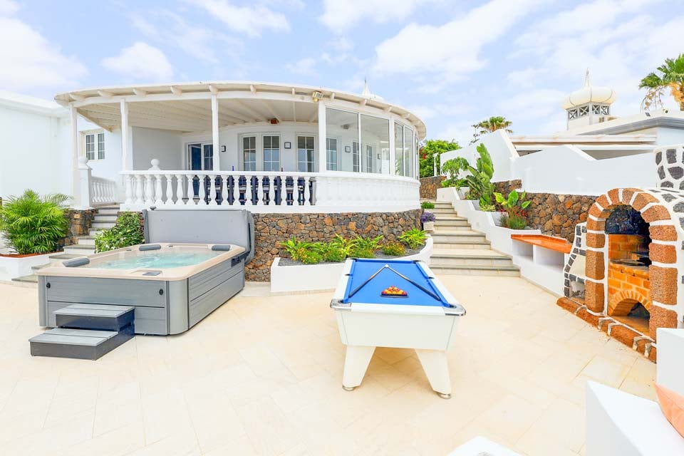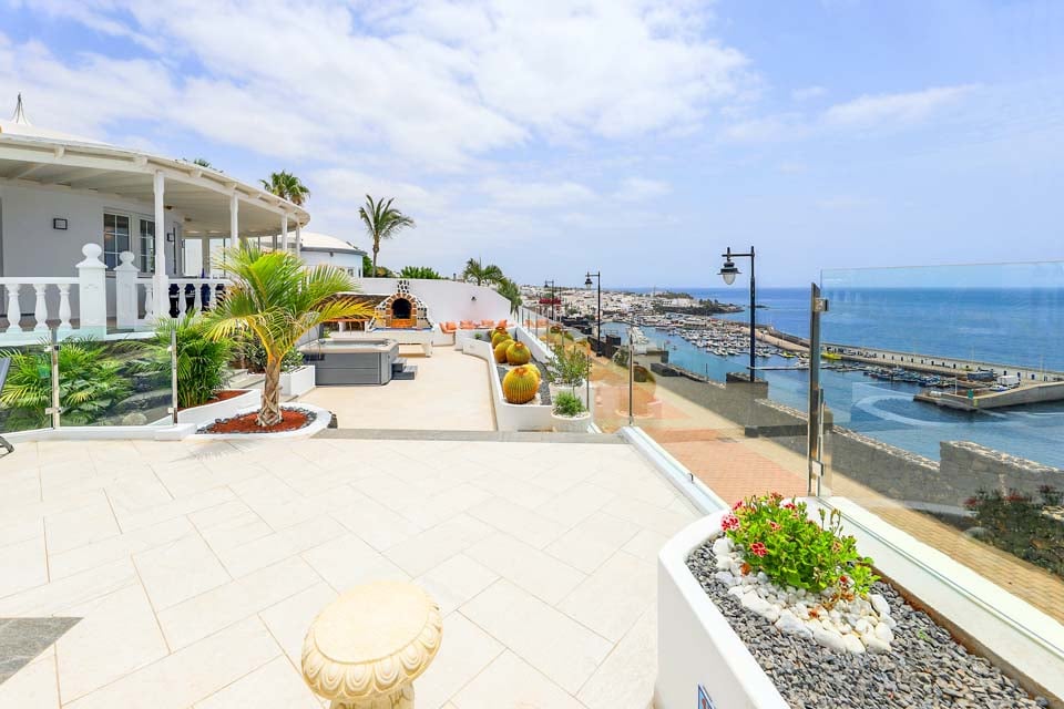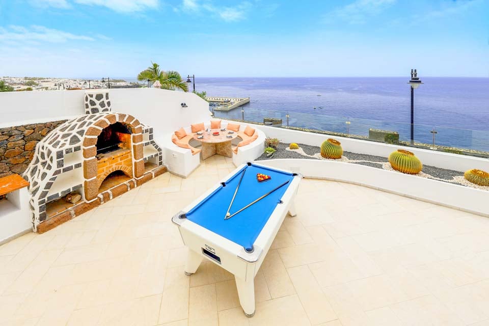 Du kan inte få ett mer strandnära läge än Villa Preciosa. Belägen vid kustleden i Puerto del Carmen, är denna fantastiska fastighet med fyra sovrum ett utmärkt val för dem som söker ultimat avkoppling. Vi kunde inte få nog av utsikten från terrassen! Var du än står möts du av panoramautsikt över Atlanten, såväl som den imponerande utsikten över hamnen och marinan. Glaspaneler löper längs terrassen, vilket innebär att utsikten inte förstörs på något sätt. Njut av avkoppling vid poolen med en cocktail i handen, medan du njuter av omgivningarna med vänner och familj. I hörnet av terrassen finns ett runt bord, undangömt bredvid den tegelbyggda grillen, samt ett biljardbord och en bubbelpool för det där lilla extra.