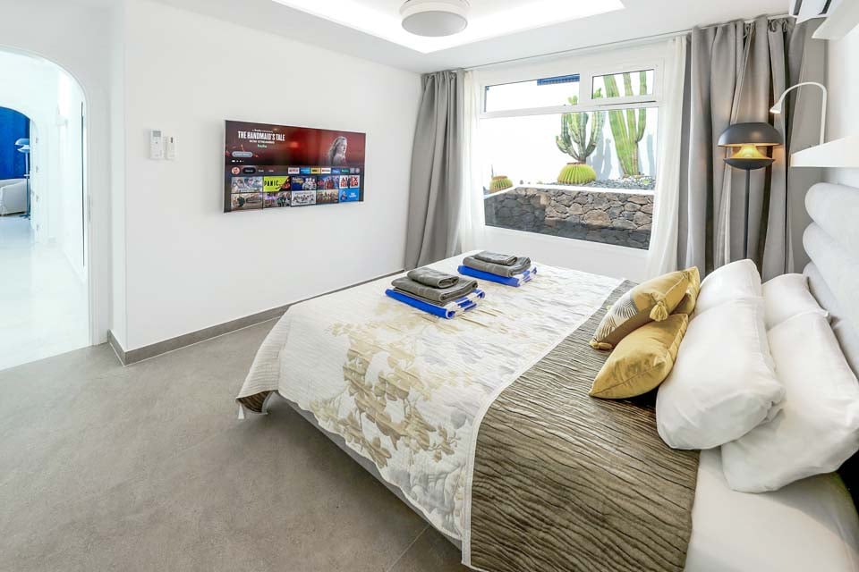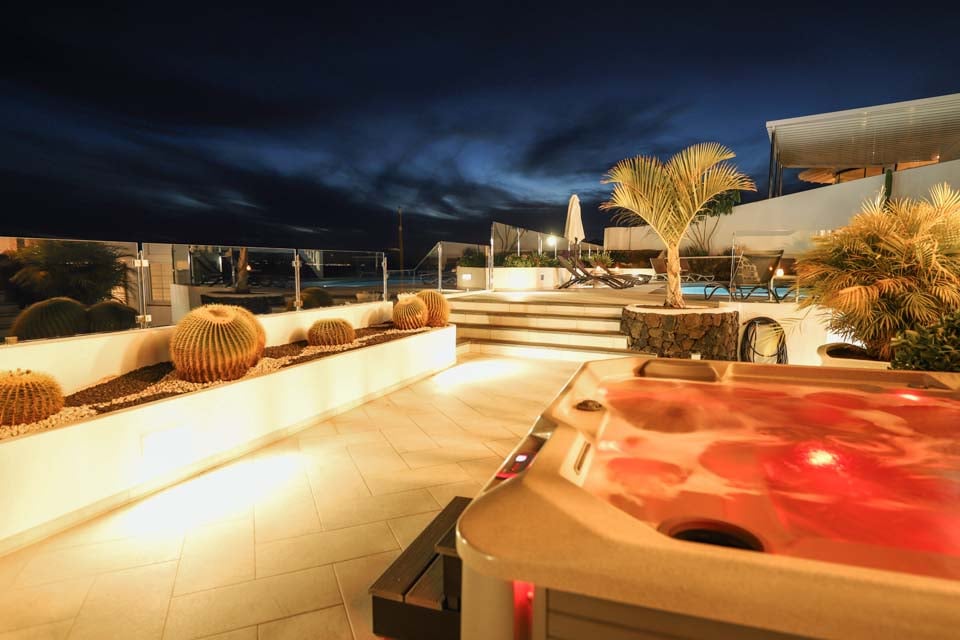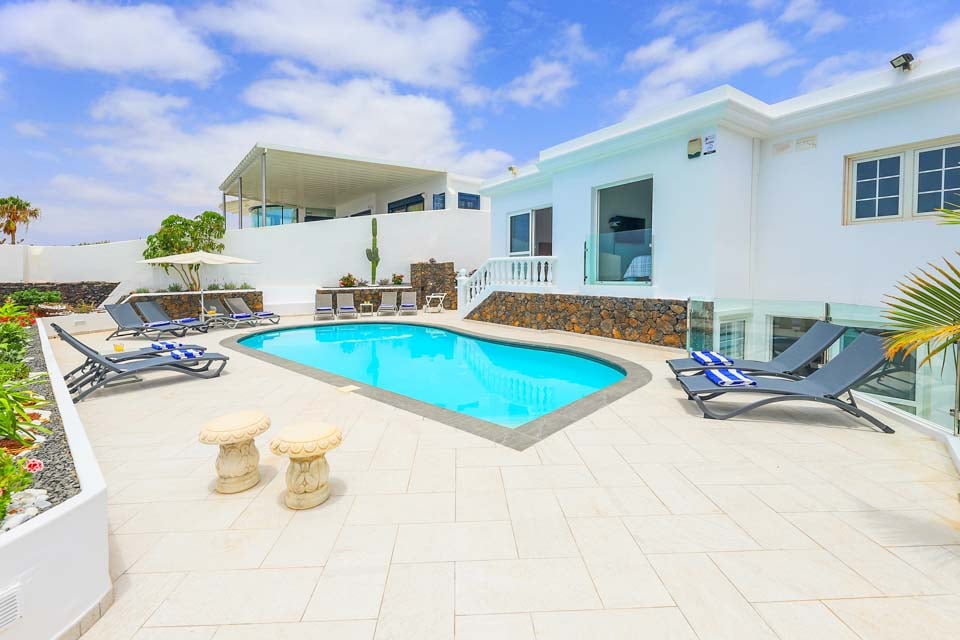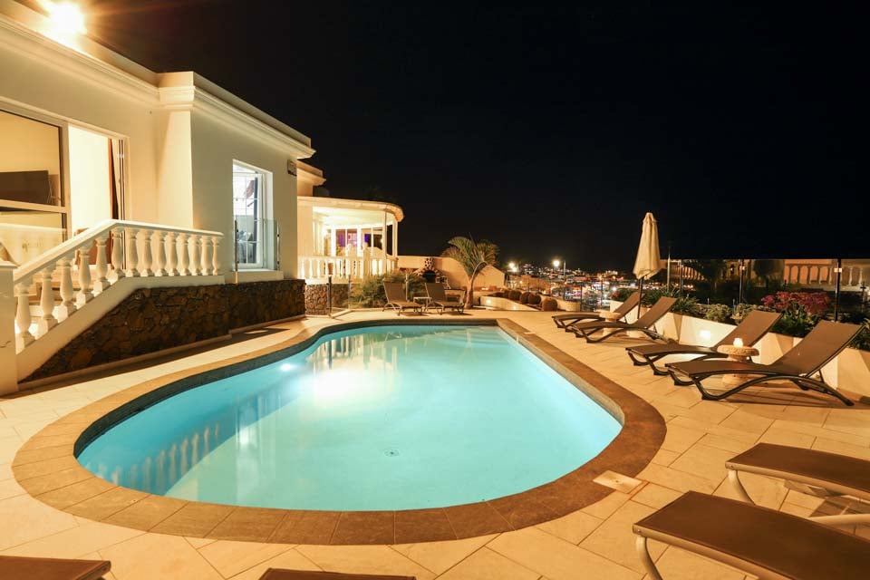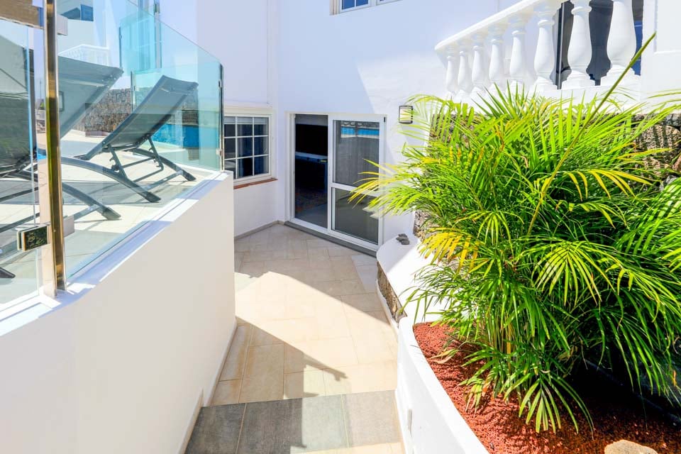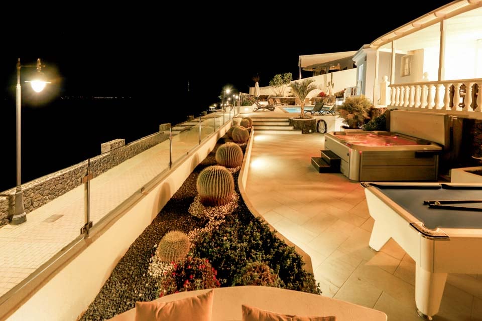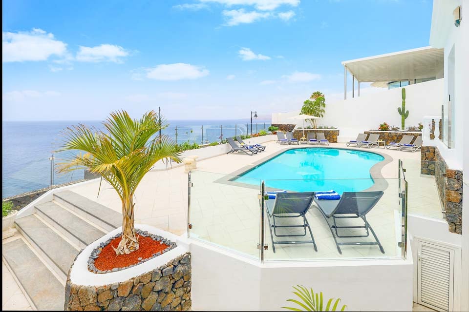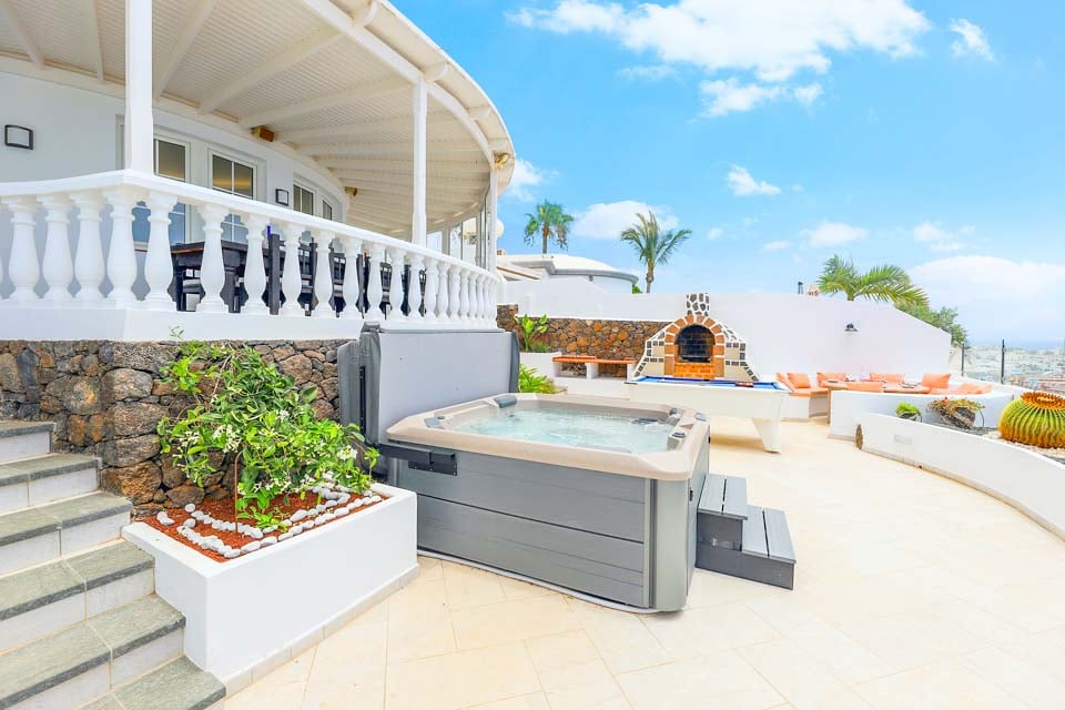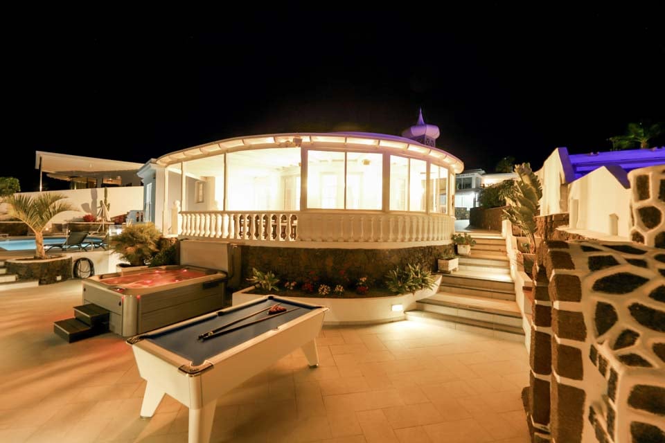 Du kan inte få ett mer strandnära läge än Villa Preciosa. Belägen vid kustleden i Puerto del Carmen, är denna fantastiska fastighet med fyra sovrum ett utmärkt val för dem som söker ultimat avkoppling. Vi kunde inte få nog av utsikten från terrassen! Var du än står möts du av panoramautsikt över Atlanten, såväl som den imponerande utsikten över hamnen och marinan. Glaspaneler löper längs terrassen, vilket innebär att utsikten inte förstörs på något sätt. Njut av avkoppling vid poolen med en cocktail i handen, medan du njuter av omgivningarna med vänner och familj. I hörnet av terrassen finns ett runt bord, undangömt bredvid den tegelbyggda grillen, samt ett biljardbord och en bubbelpool för det där lilla extra.