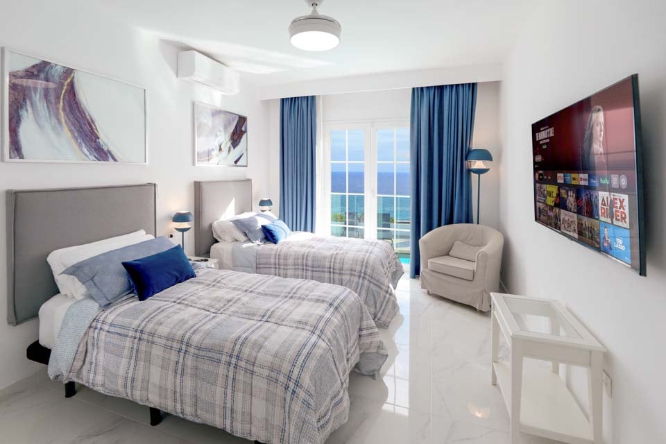 Enkelsängar, Luftkonditionering, Smart-TV, Takfläkt, Fläkt, Havsutsikt, Terrassdörrar, Dörrar till terrass, Havsutsikt