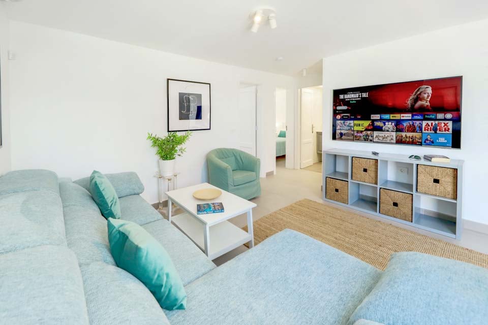 Bekväm sittgrupp, Smart-TV, Luftkonditionering, Dörrar till terrass, Terrassdörrar, Havsutsikt