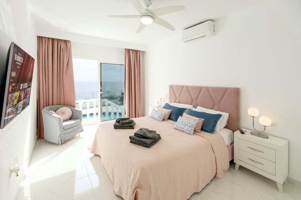 King size-säng, luftkonditionering, smart-TV, altandörrar, dörrar till terrass, havsutsikt, takfläkt