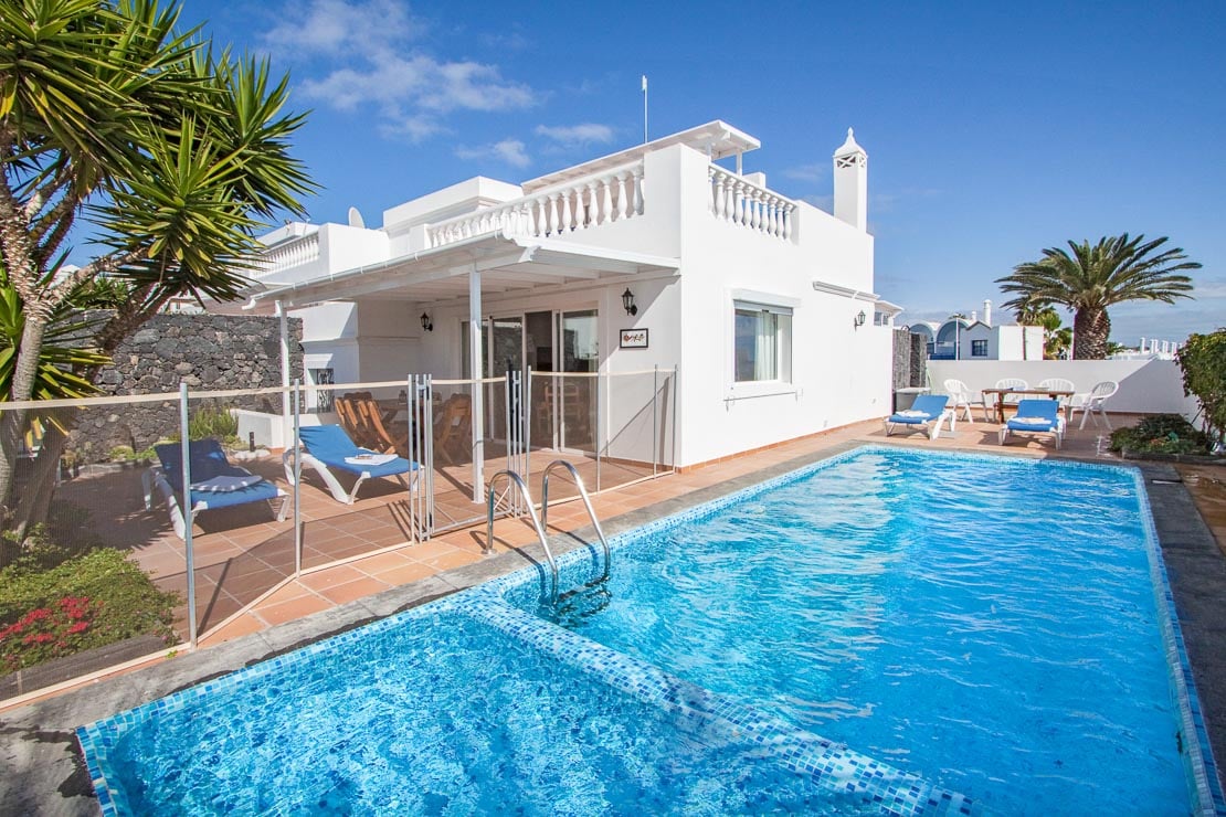 Seajay är byggt över 2 våningar och erbjuder övervåningen till sovrummet med eget badrum och en privat balkong med oavbruten havsutsikt. De 2 tvåbäddsrummen ligger på bottenvåningen och leder till ett öppet vardagsrum och matplats samt ett välutrustat kök. Altandörrar från vardagsrummet leder ut mot den terrakottakaklade terrassen och det privata poolområdet, omgivet av en mur för din avskildhet runt poolområdet. Ytterligare täckta sittplatser utomhus för måltider utomhus och traditionell kanarisk grill i tegel. Poolen har ett säkerhetsnätstaket med en låsbar grind så att små barn inte kan komma in i poolområdet utan tillsyn. Staketet kan fällas ner om det inte finns några barn i ert sällskap och ni inte vill använda det, vilket ger er full kontroll och sinnesro.