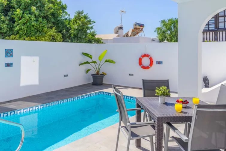 Direkt översatt till Villa 'Sun', är denna vackra fastighet med två sovrum ett utmärkt val för dem som vill njuta av solskenet året runt. Du kommer att ha svårt att hitta en mer centralt belägen villa än Villa Sol, eftersom lokala stormarknader, butiker, restauranger och barer bara ligger 140 meter bort. Sandstranden och Puerto del Carmens huvudgata ligger inom bekvämt räckhåll från villan. Du kommer inte att ha brist på saker att göra på din semester heller, särskilt eftersom villan har en privat uppvärmd* pool, uteservering och ett bordtennisbord för hälsosam tävling mellan vänner och familj.