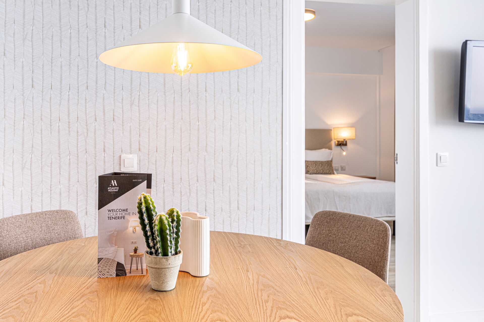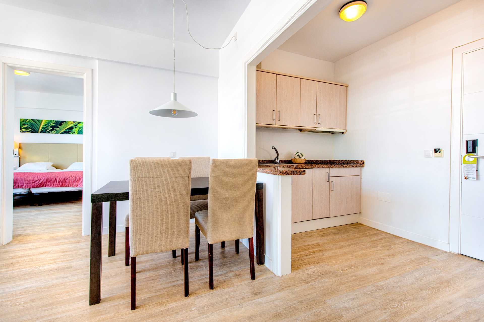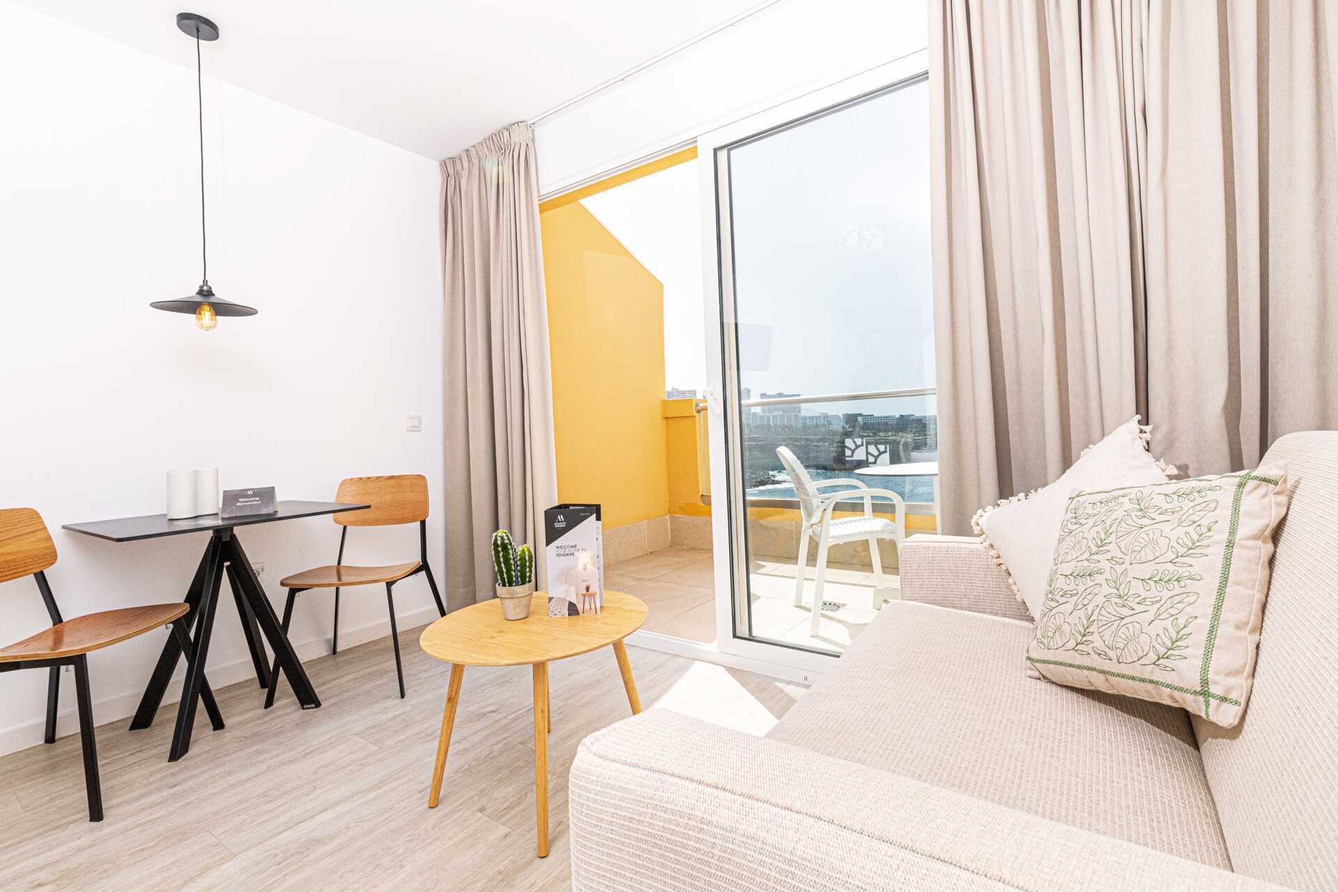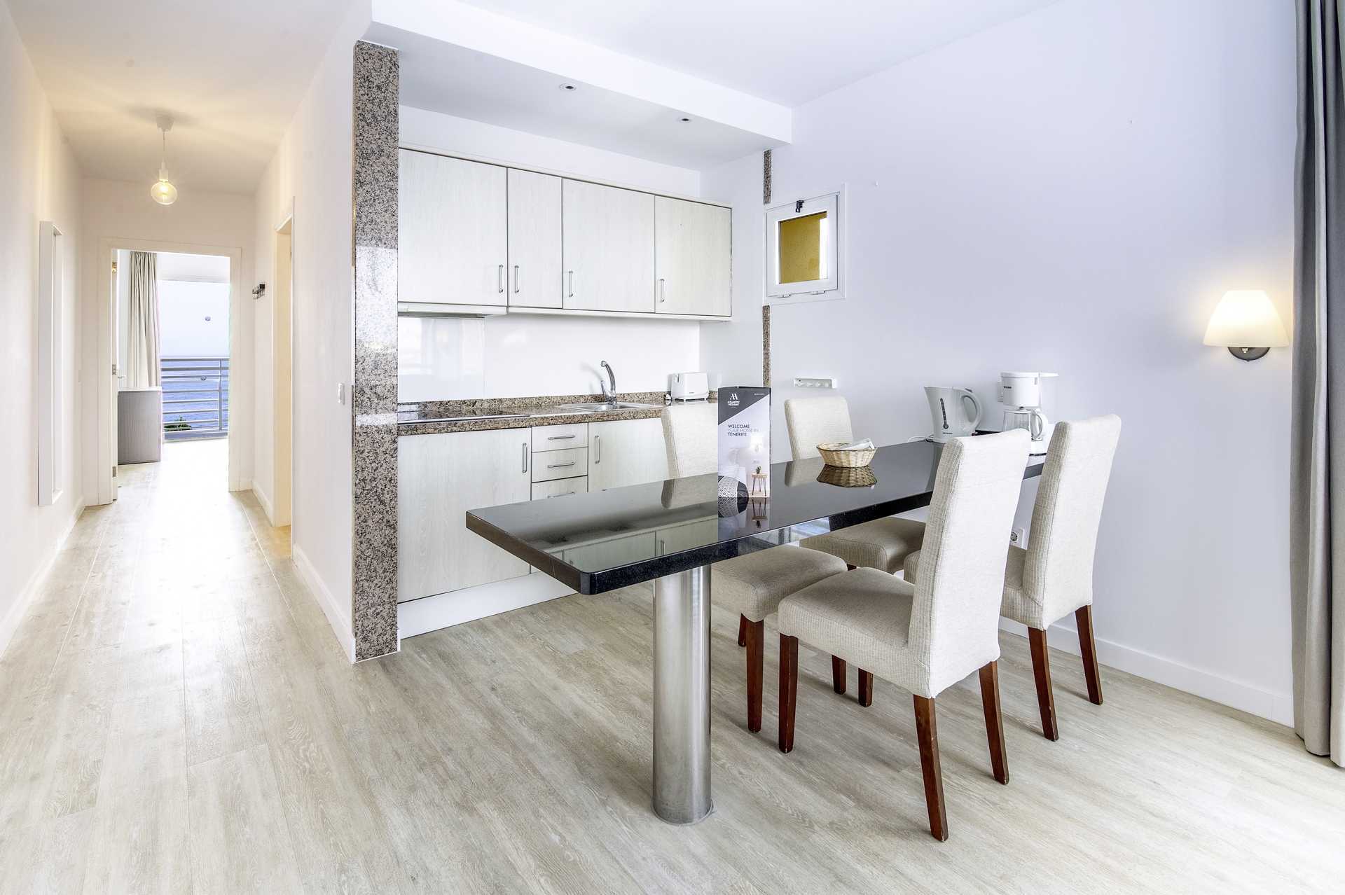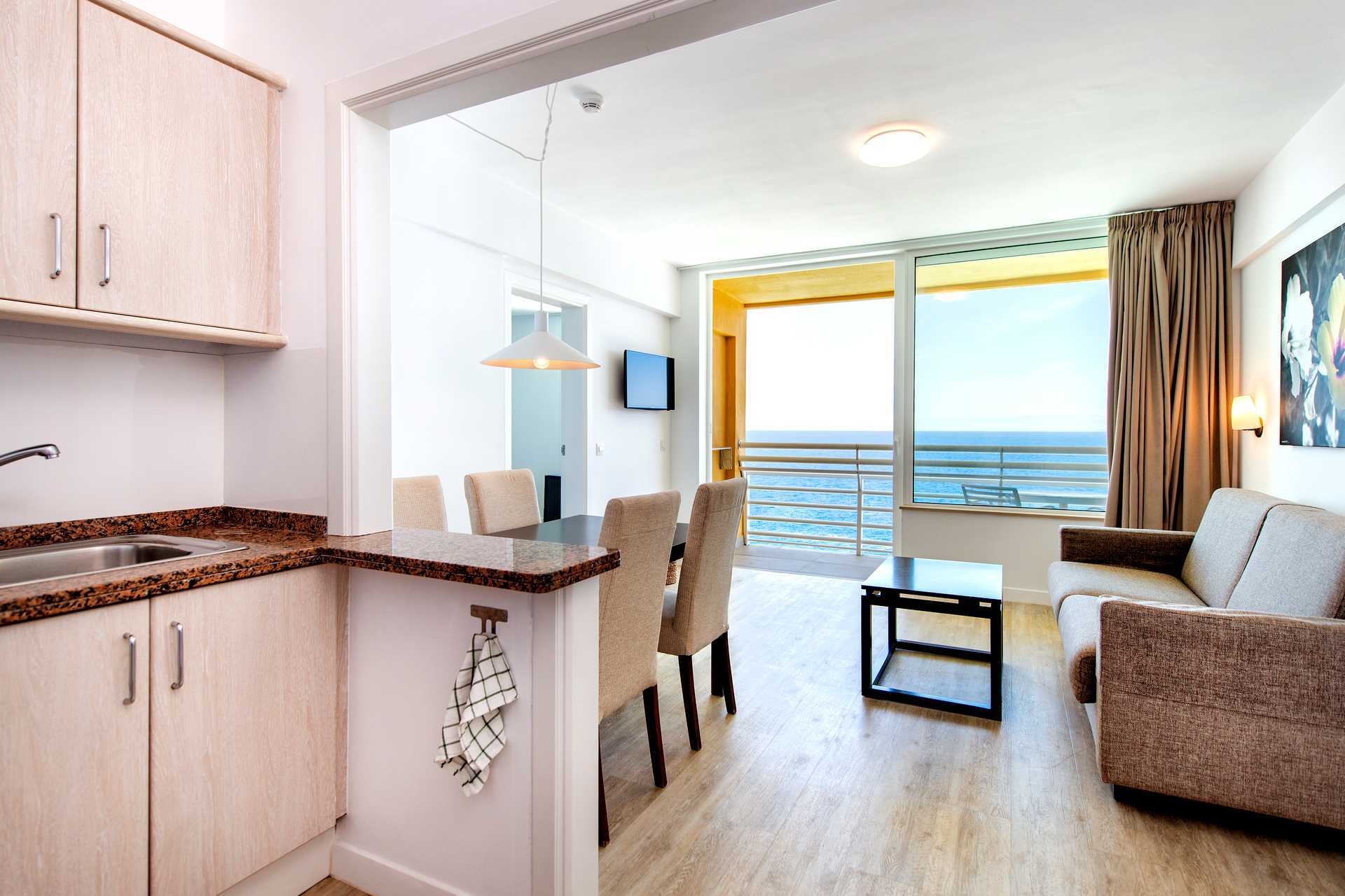 Tvårumslägenhet superior med balkong och havsutsikt. Ett sovrum och ett kombinerat vardagsrum med minikök. En dubbelsäng eller två enkelsängar. Möjlighet till extrabädd i bäddsoffa. I köket finns diskmaskin, mikrovågsugn, kokplattor, vattenkokare, kaffebryggare, brödrost, kylskåp och enkel köksutrustning. Wifi ingår. Deponering mot avgift. Tv med skandinaviska och internationella kanaler. Hårtork, badrock och poolhanddukar. Badrum med dusch och wc. Städning 5 ggr/vecka.