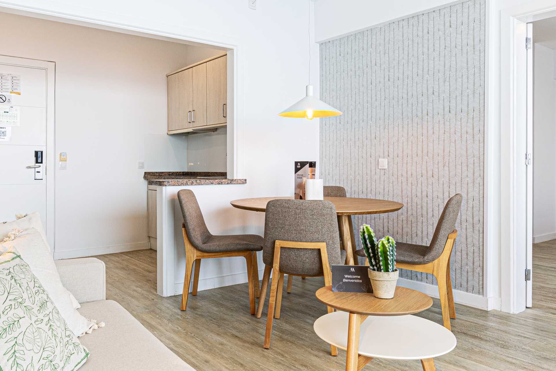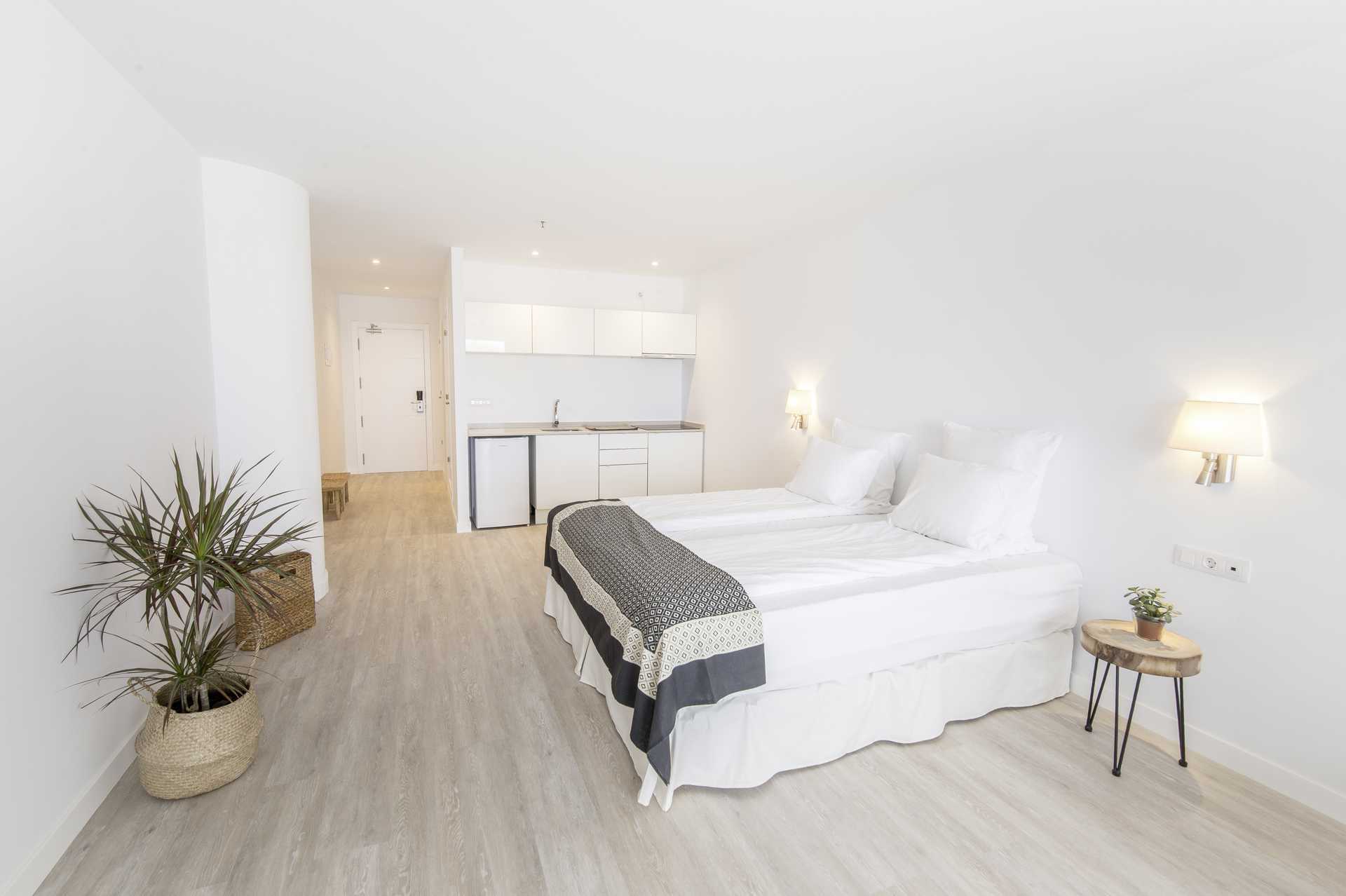 Enrumslägenhet med balkong eller markterrass och havsutsikt. Kombinerat sovrum och minikök. En dubbelsäng eller två enkelsängar. Möjlighet till extrabädd i bäddsoffa. Minikök med kylskåp, kokplattor, vattenkokare, kaffebryggare, brödrost och enkel köksutrustning. I vissa enrumslägenheter finns en låg skiljevägg. Wifi ingår. Deponering mot avgift. Tv med skandinaviska och internationella kanaler. Hårtork. Badrum med dusch och wc. Städning 5 ggr/vecka.