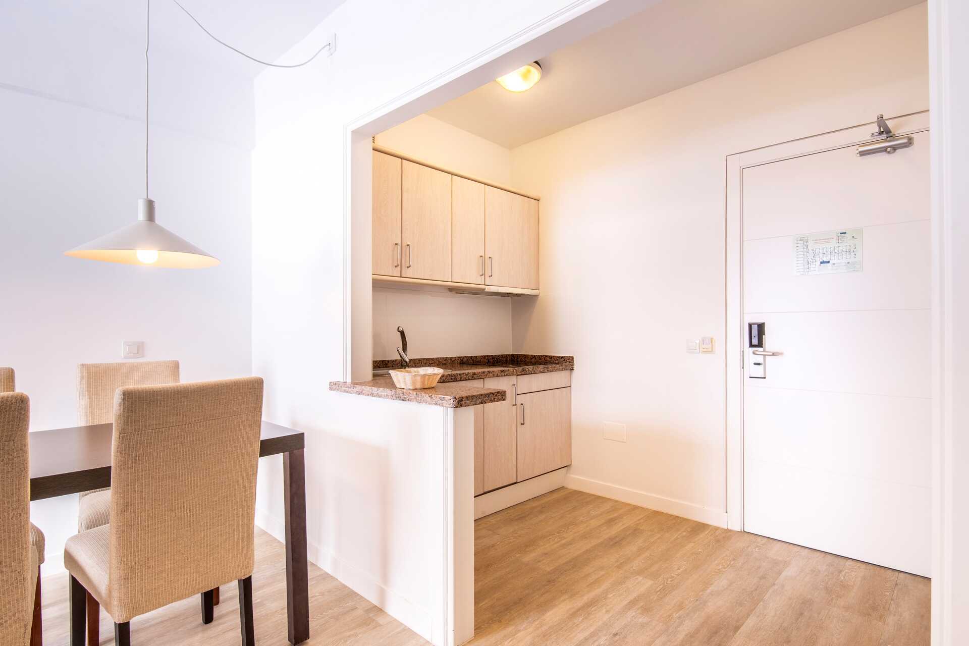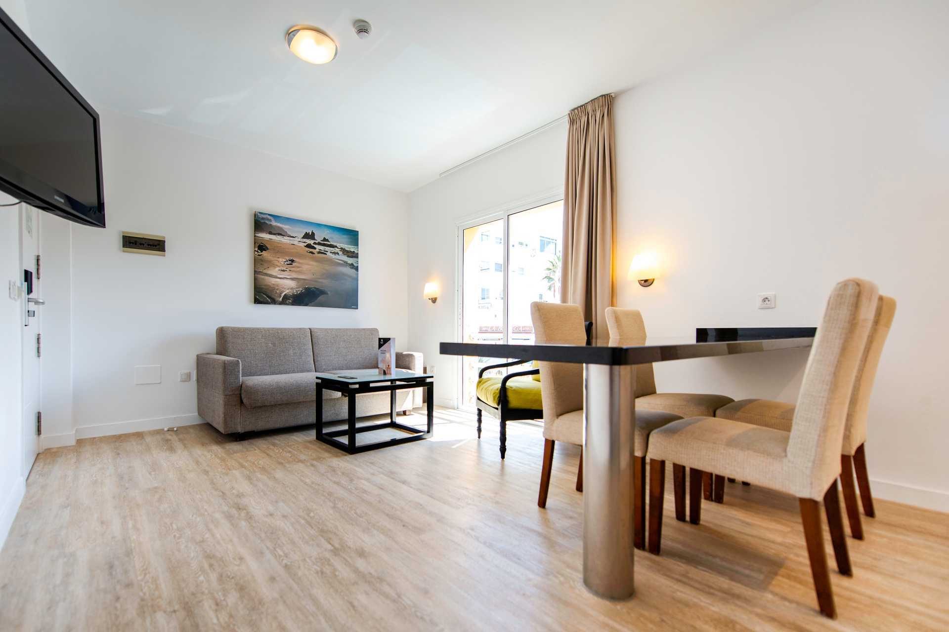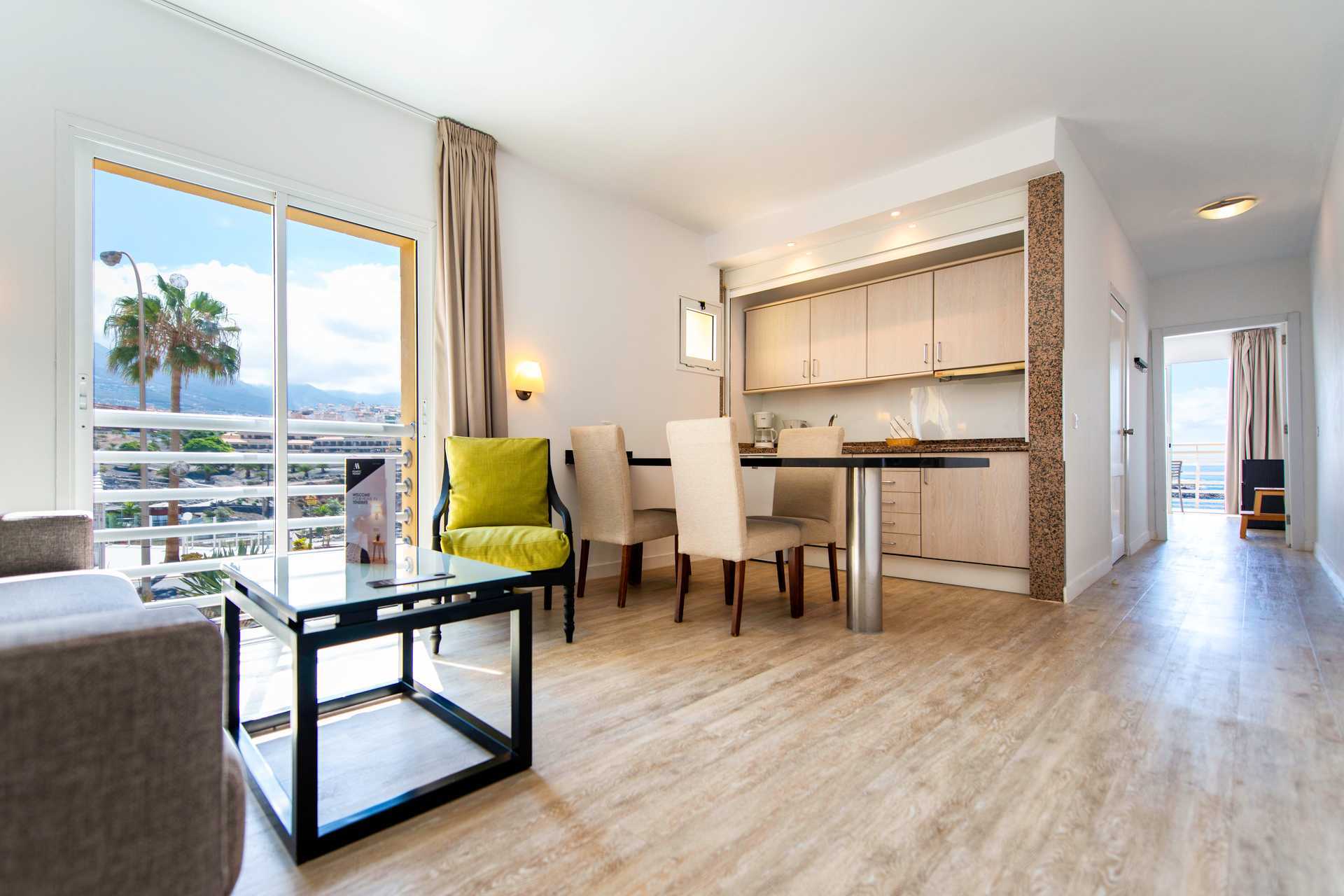 Tvårumslägenhet superior med balkong och havsutsikt. Ett sovrum och ett kombinerat vardagsrum med minikök. En dubbelsäng eller två enkelsängar. Möjlighet till extrabädd i bäddsoffa. I köket finns diskmaskin, mikrovågsugn, kokplattor, vattenkokare, kaffebryggare, brödrost, kylskåp och enkel köksutrustning. Wifi ingår. Deponering mot avgift. Tv med skandinaviska och internationella kanaler. Hårtork, badrock och poolhanddukar. Badrum med dusch och wc. Städning 5 ggr/vecka.