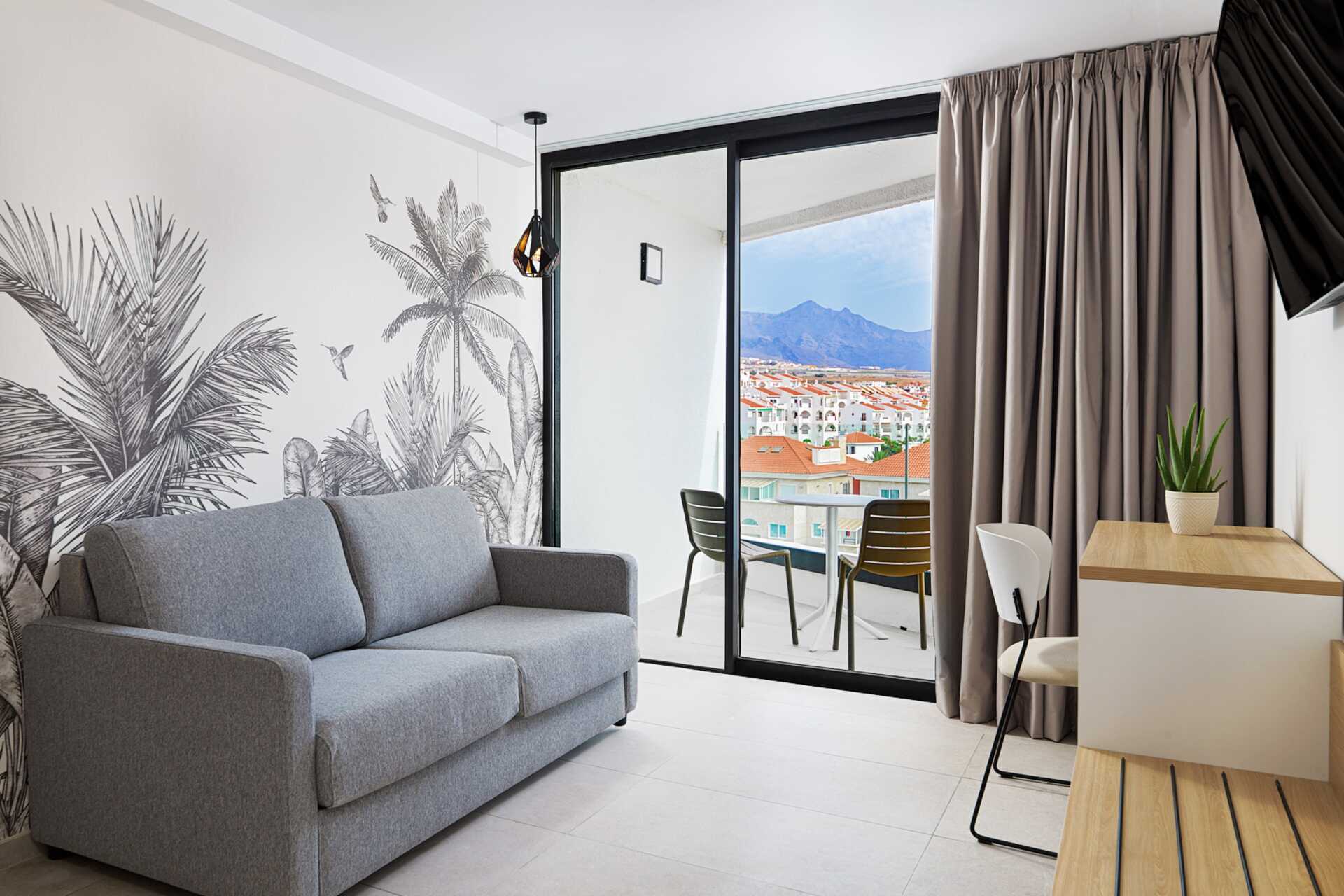 Svit med balkong. Sviten består av ett sovrum med två enkelsängar och ett vardagsrum med möjlighet till extrabädd i bäddsoffa. Wifi, deponering och luftkonditionering i sovrummet ingår. Mindre s.k. cooler för svala drycker. Två tv-apparater med internationella kanaler. Hårtork. Badrum med dusch och wc. Städning 7 ggr/vecka. Barn under två år räknas in i max antal personer i rummet.