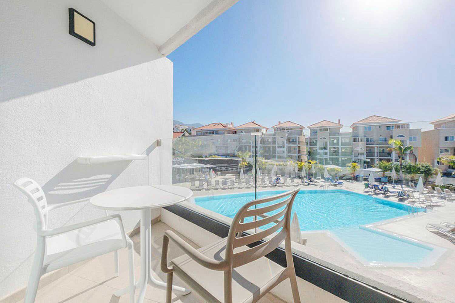 Dubbelrum med balkong, vissa med poolutsikt och vissa med begränsad havsutsikt. Två enkelsängar. Möjlighet till extrabädd i bäddsoffa. Wifi och luftkonditionering ingår. Deponering mot avgift. Mindre s.k. cooler för svala drycker. Tv med internationella kanaler. Hårtork. Badrum med dusch och wc. Städning 7 ggr/vecka. Barn under två år räknas in i max antal personer i rummet.