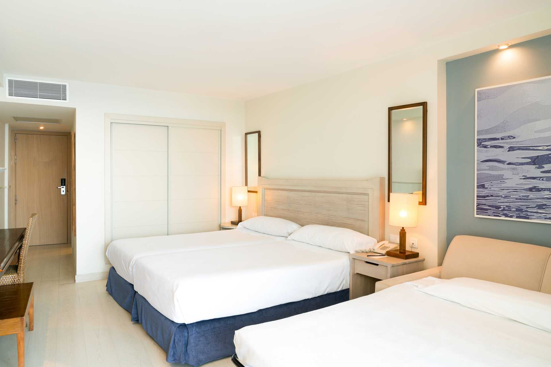 Dubbelrum med balkong, vissa med havsutsikt. En dubbelsäng. Wifi, deponering och luftkonditionering ingår. Minibar. Tv med internationella kanaler. Hårtork. Badrum med badkar eller dusch samt wc. Städning 5 ggr/ vecka.