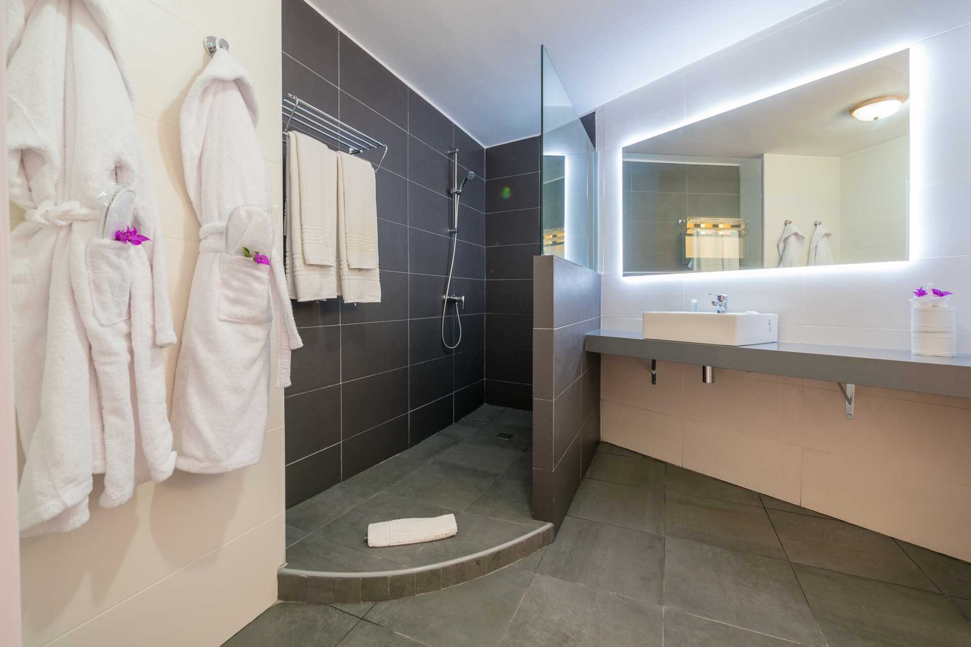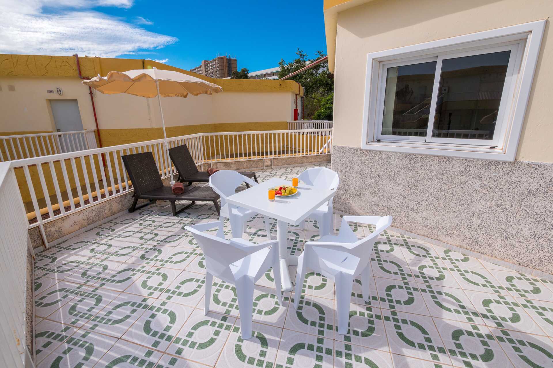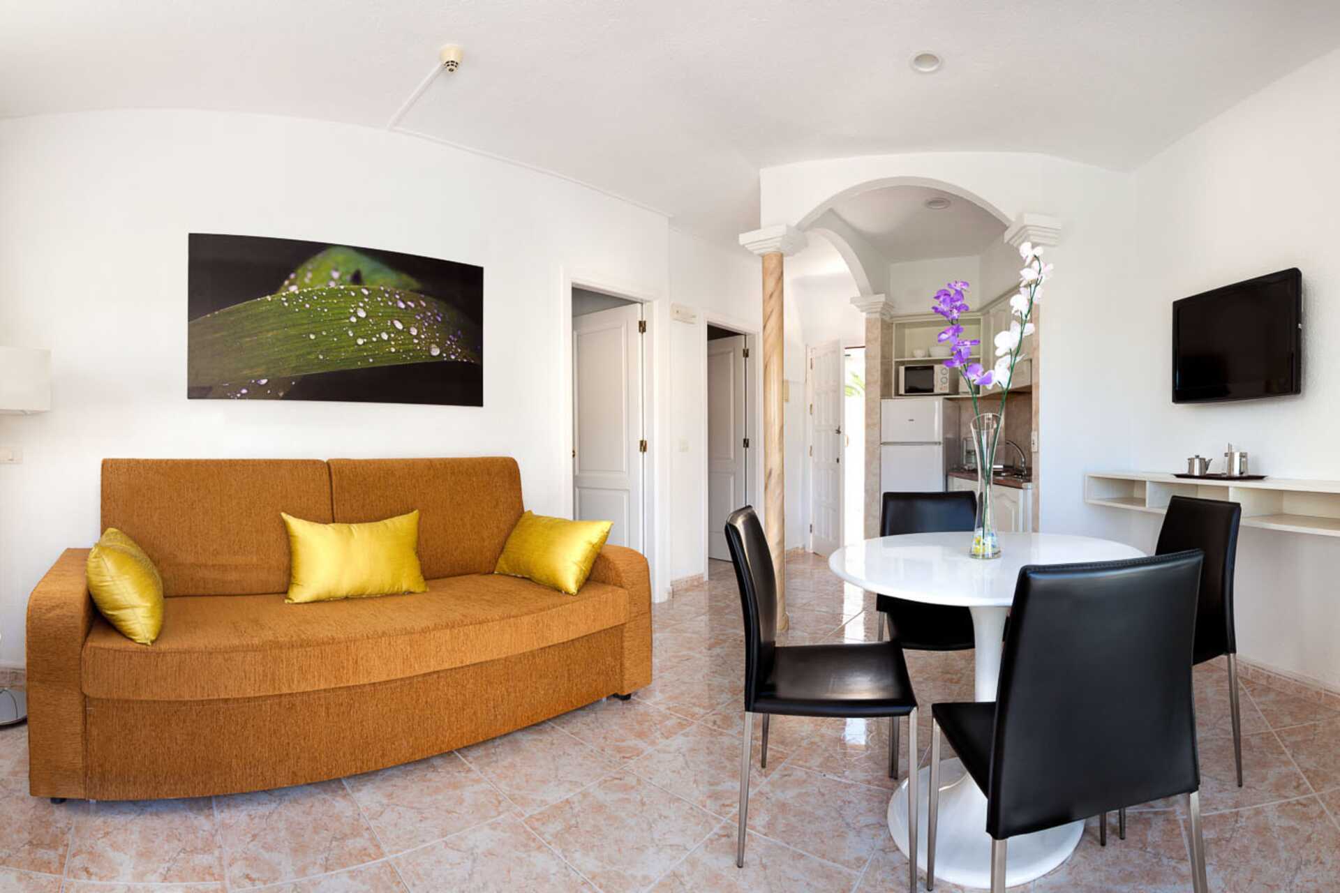 Tvårumslägenhet deluxe med stor balkong eller terrass. På uteplatsen finns två solstolar. Ett sovrum och kombinerat vardagsrum med minikök. Två enkelsängar. Möjlighet till extrabäddar i en bäddsoffa. Minikök med kylskåp, kokplattor, mikrovågsugn, vattenkokare, kaffebryggare, brödrost och enkel köksutrustning. Wifi och deponering ingår. Luftkonditionering mot avgift. Tv med internationella kanaler. Badrum med dusch och wc. Städning 3 ggr/vecka.