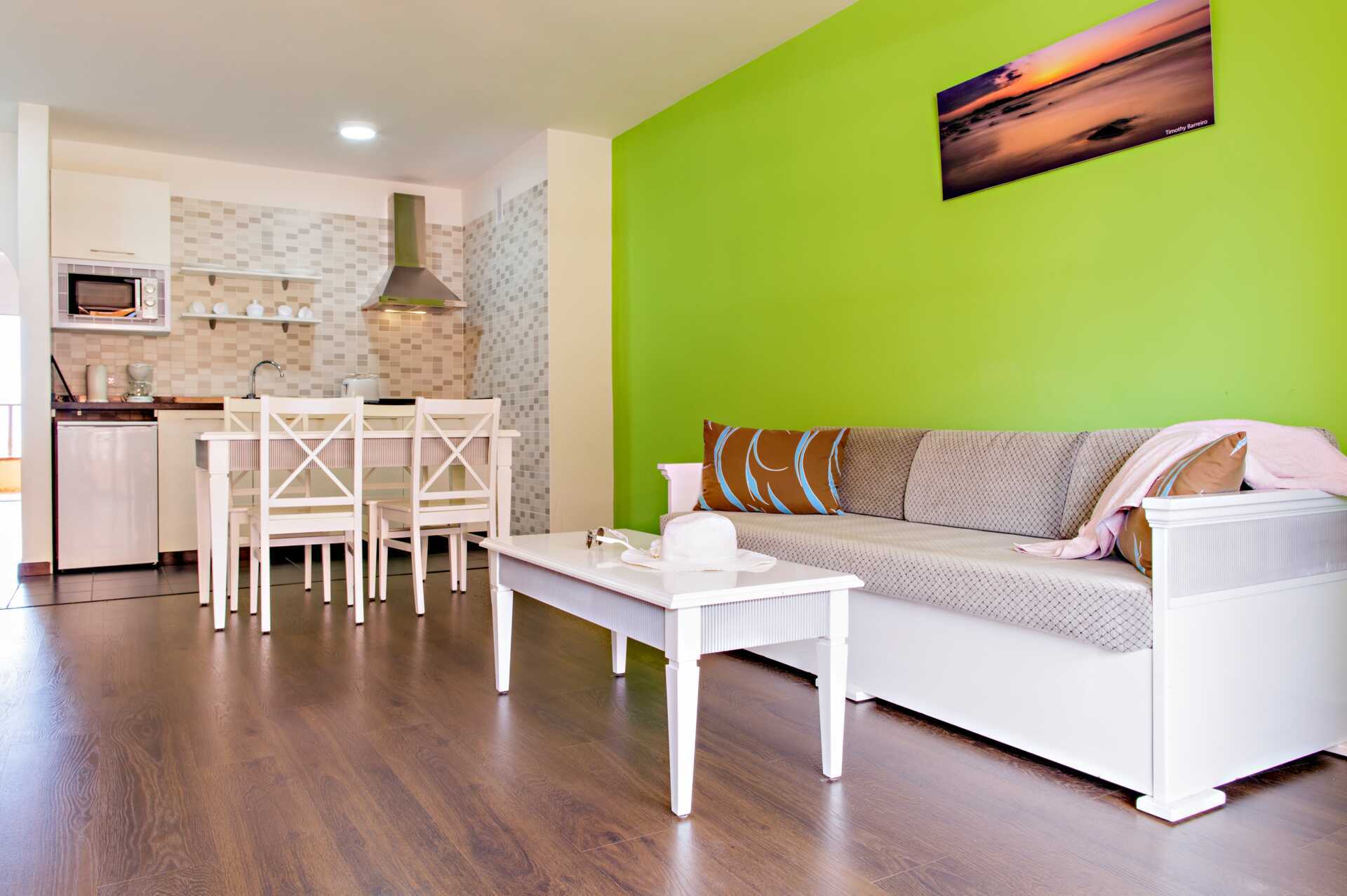 Tvårumslägenhet med balkong eller terrass, vissa med poolutsikt. Sovrum och kombinerat vardagsrum med minikök. Två enkelsängar. Möjlighet till extrabäddar i enkelsängar. Minikök med kokplattor, mikrovågsugn, kylskåp, brödrost, vattenkokare, kaffebryggare och enkel köksutrustning. Wifi mot avgift. Deponering mot avgift. Takfläkt. Tv med internationella kanaler. Hårtork. Badrum med dusch och wc. Städning 5 ggr/vecka.