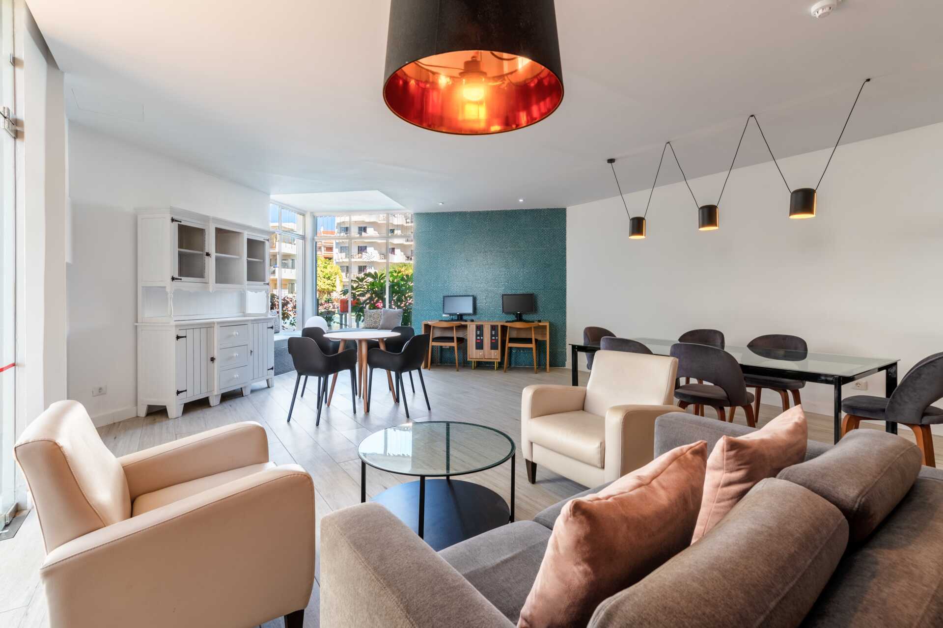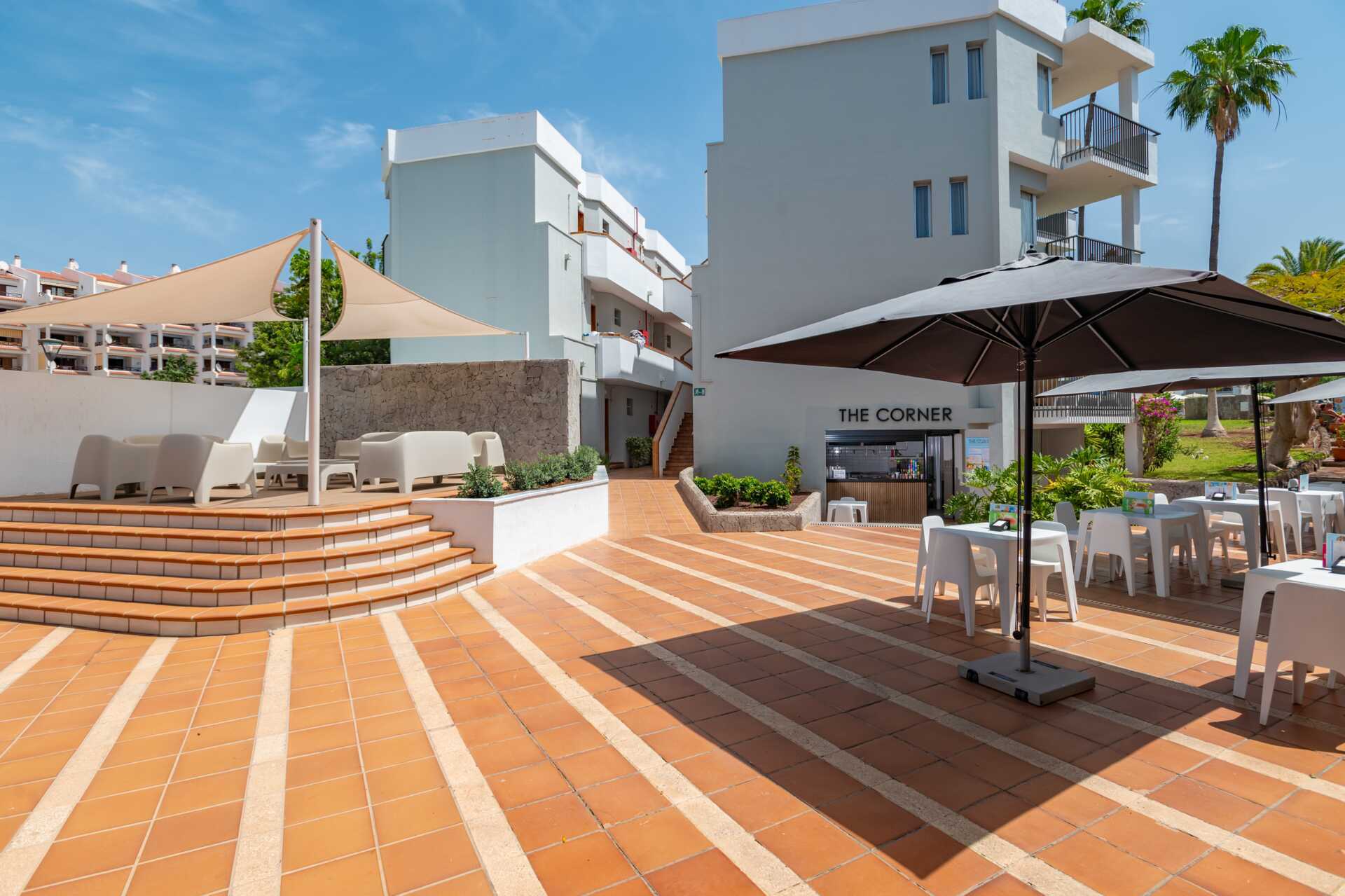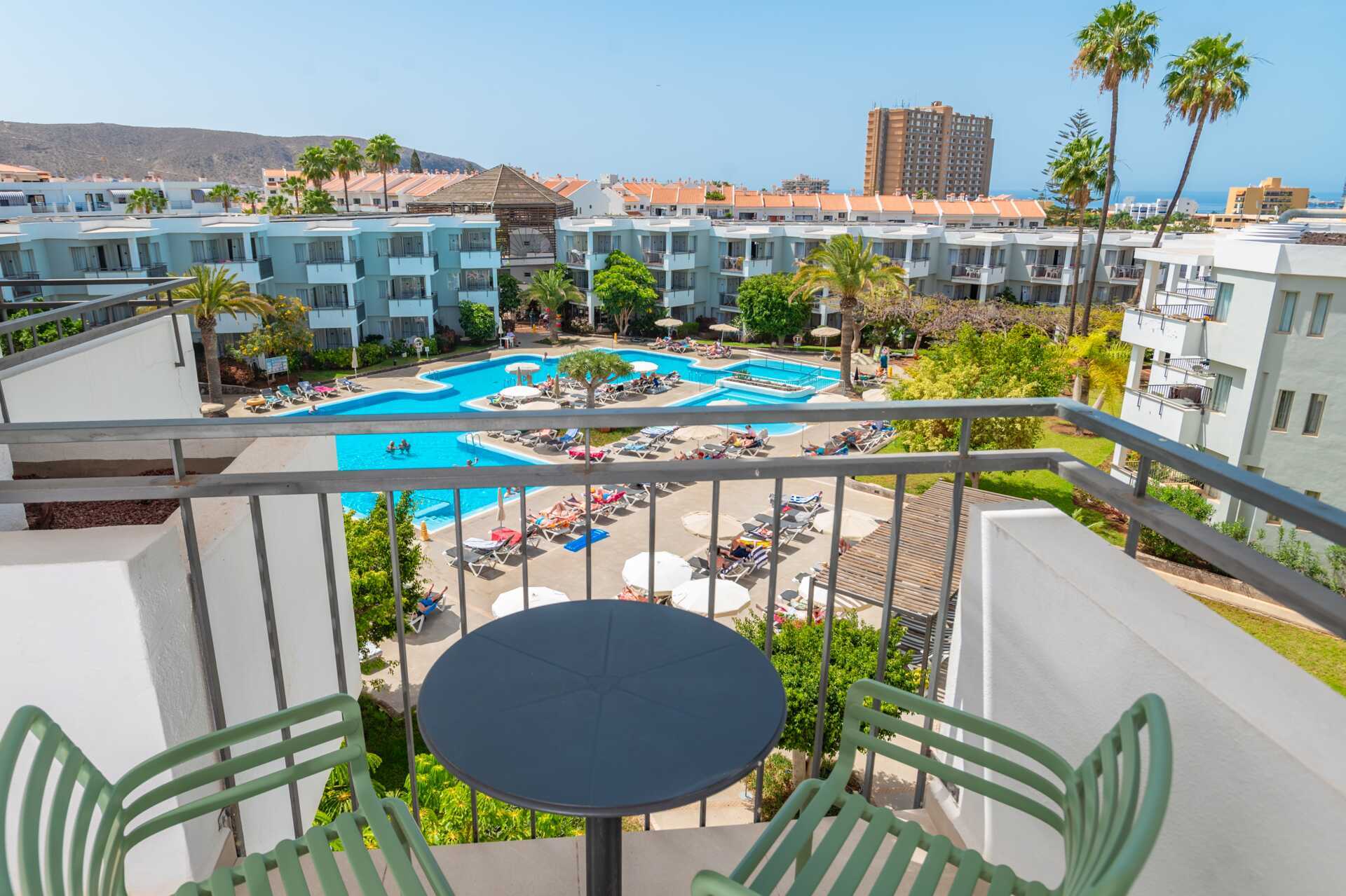 Något slitna tvårumslägenheter med balkong eller terrass, vissa med poolutsikt. Sovrum och kombinerat vardagsrum med minikök. En dubbelsäng eller två enkelsängar. Möjlighet till extrabäddar i bäddsoffa. Minikök med kylskåp, kokplattor, ugn, vattenkokare, brödrost och enkel köksutrustning. Wifi och deponering mot avgift. Takfläkt i vardagsrummet. Tv med internationella kanaler. Hårtork. Badrum med badkar eller dusch samt wc. Städning 5 ggr/vecka.