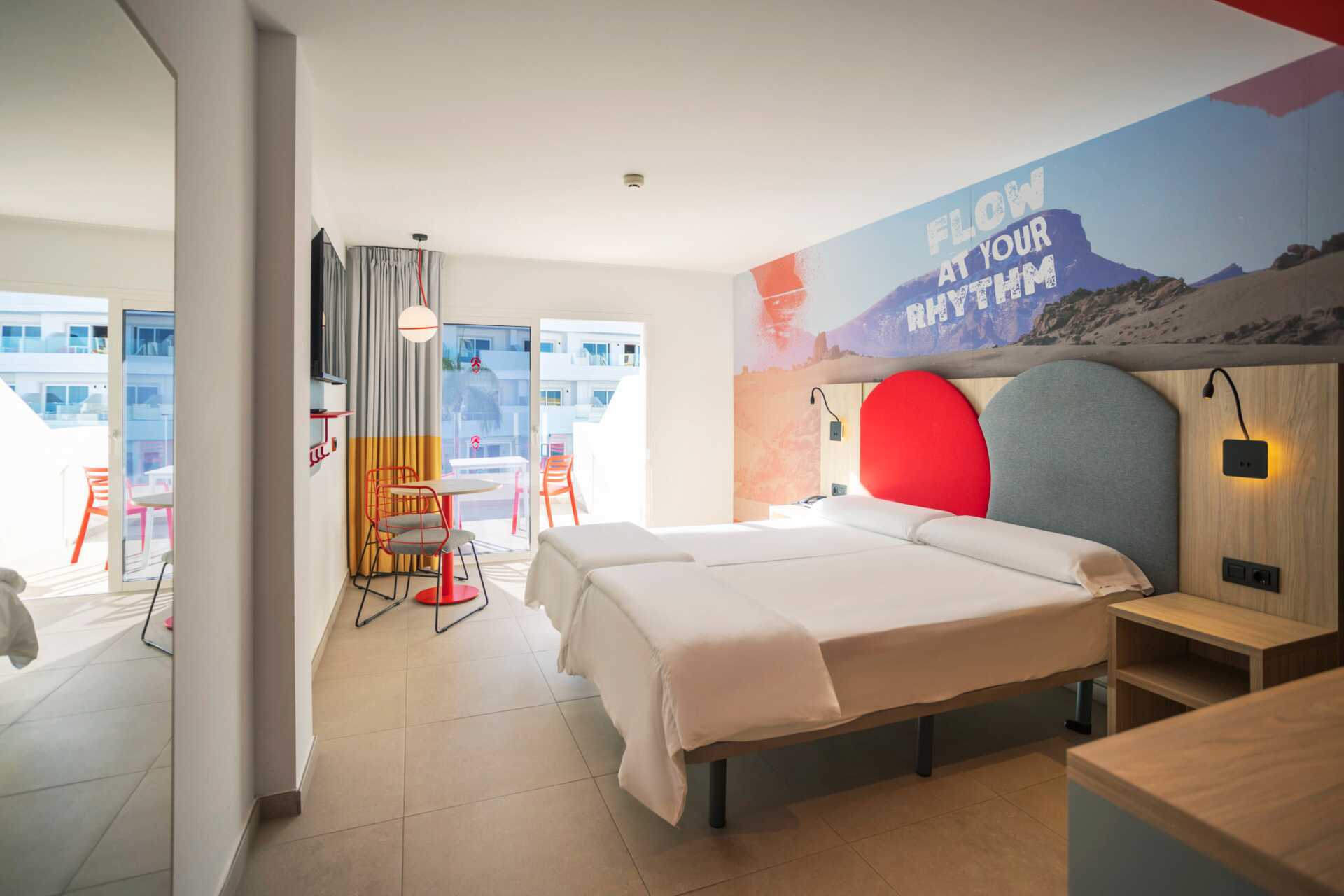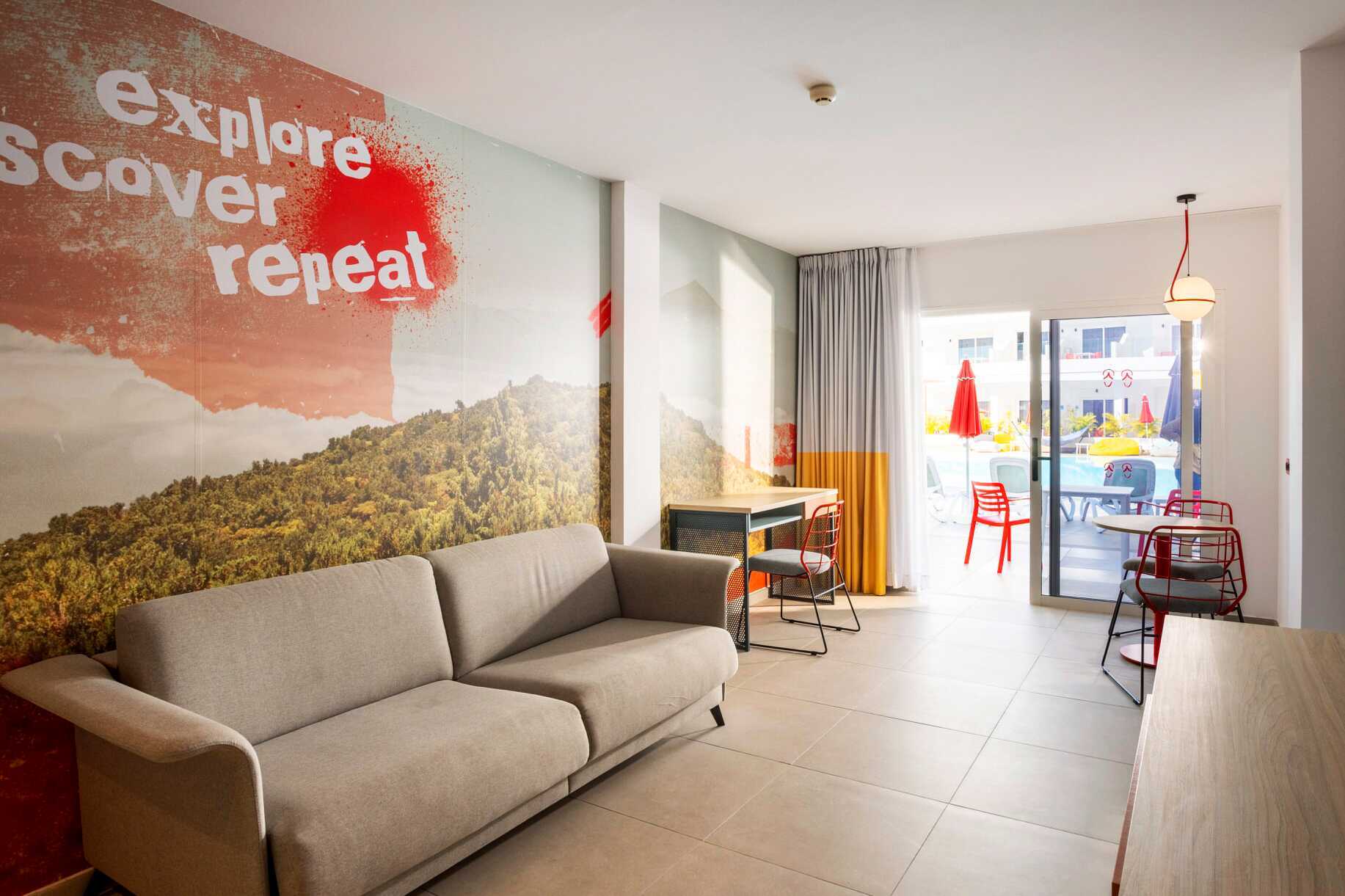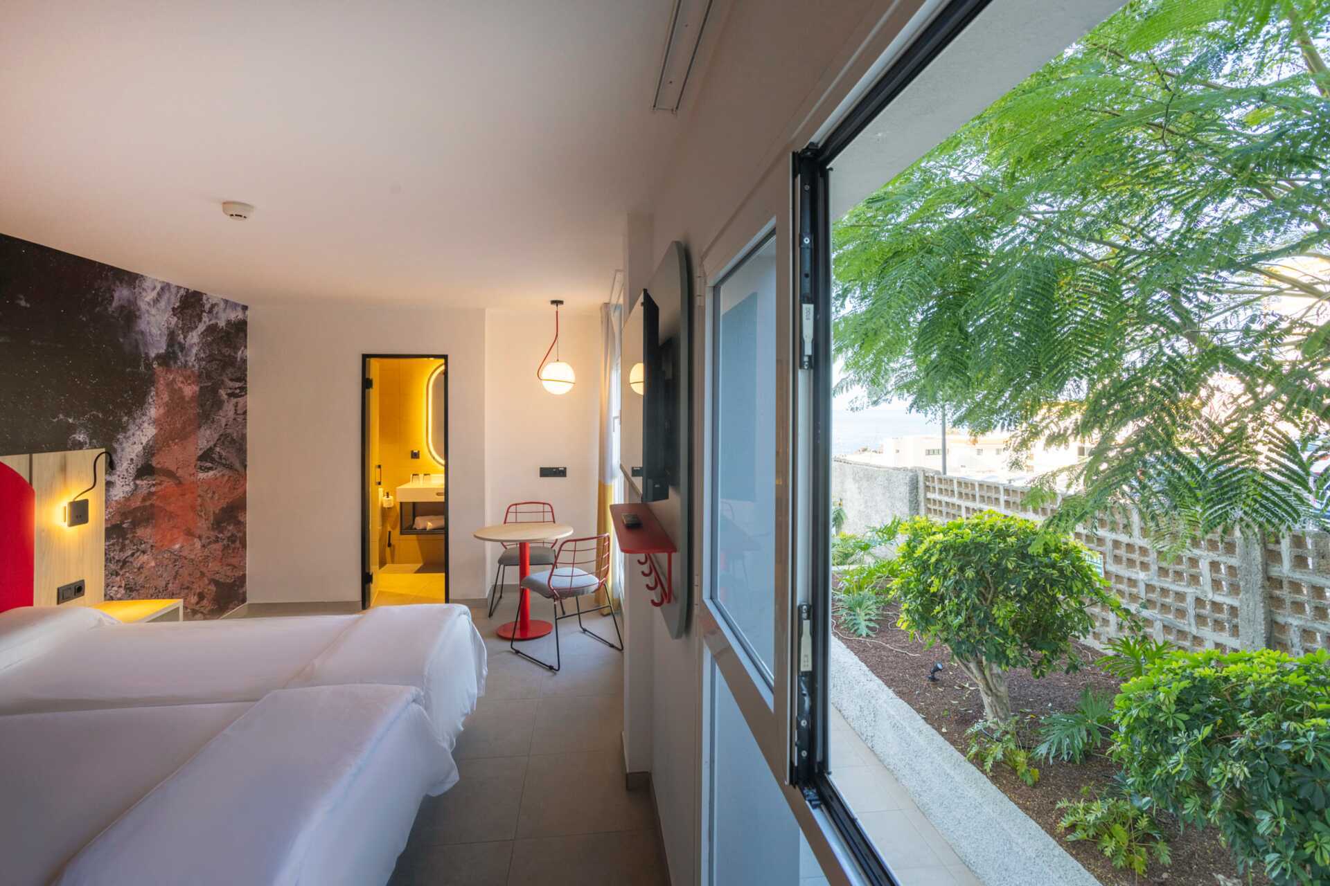 Svit med markterrass och poolutsikt. Sviten består av ett sovrum och ett vardagsrum. Två enkelsängar. Möjlighet till extrabädd i bäddsoffa. Wifi, luftkonditionering och deponering ingår. Takfläkt. Minibar. Tv med internationella kanaler. Badrum med dusch och wc. Städning sker var tredje dag.