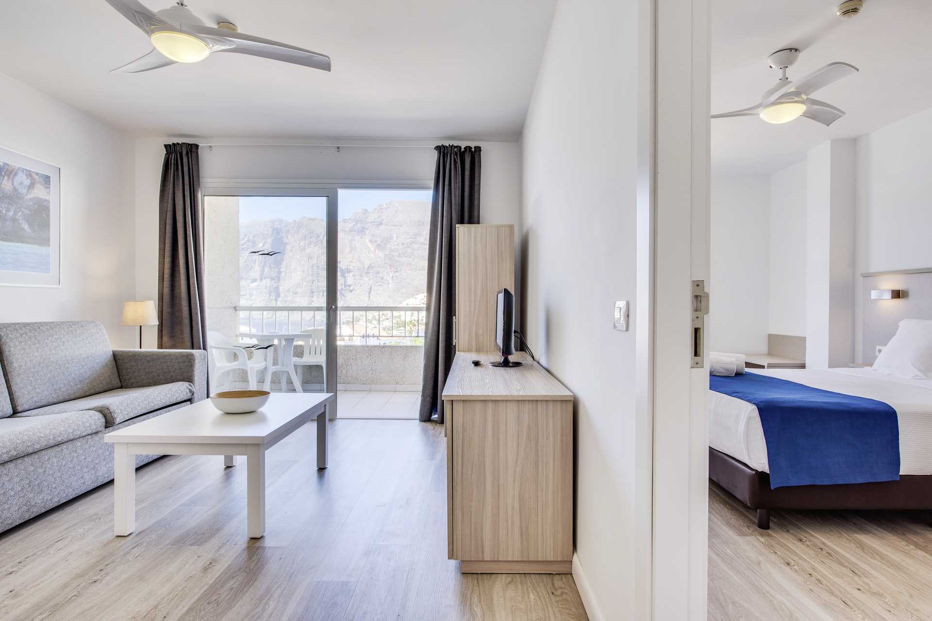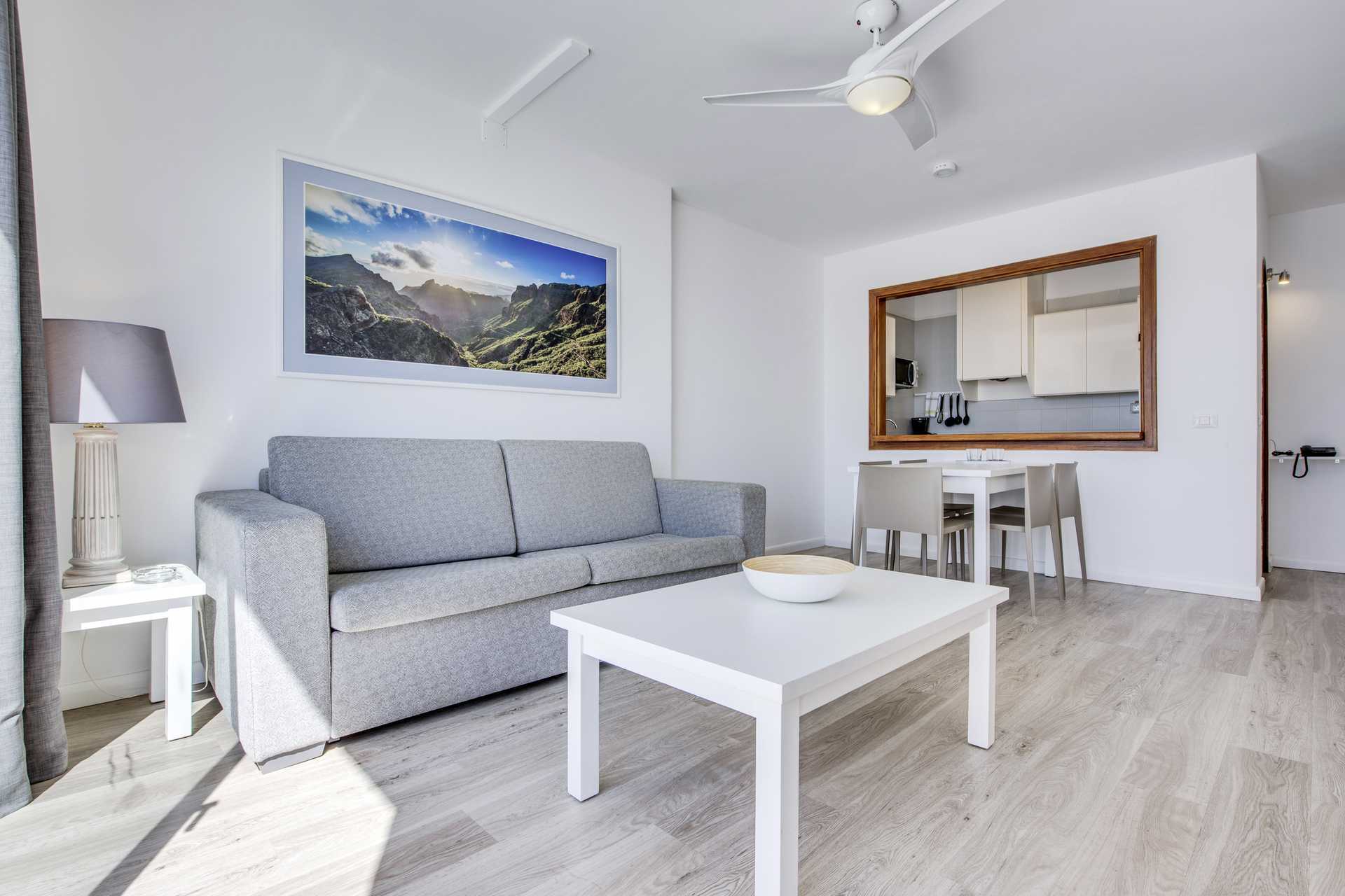 Tvårumslägenhet med balkong, vissa med begränsad havsutsikt. Lägenheterna varierar i storlek och planlösning. Sovrum och kombinerat vardagsrum med minikök. En dubbelsäng. Möjlighet till extrabäddar i bäddsoffa. Minikök med kylskåp, kokplattor, mikrovågsugn, kaffebryggare, vattenkokare, brödrost och enkel köksutrustning. Wifi och deponering mot avgift. Takfläkt finns i båda rummen. Tv med internationella kanaler. Strykjärn och strykbräda. Hårtork. Badrum med dusch och wc. Städning 3 ggr/vecka.