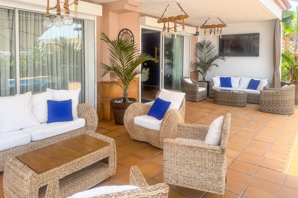 Belägen i Playa de la Arena hittar vi den magnifika Villa Blossom, en villa med fem sovrum, perfekt för bokningar av upp till tio gäster. Vi kunde inte få nog av terrassen! Njut av solskenet med vänner och familj medan du njuter av din egen bubbelpool, spela en omgång biljard eller varva ner med en bra bok i de mysiga sofforna. För att äta utomhus har du din alldeles egna grillplats för tapas till lunch och kvällsmåltider omgiven av vulkanbergen bortom.