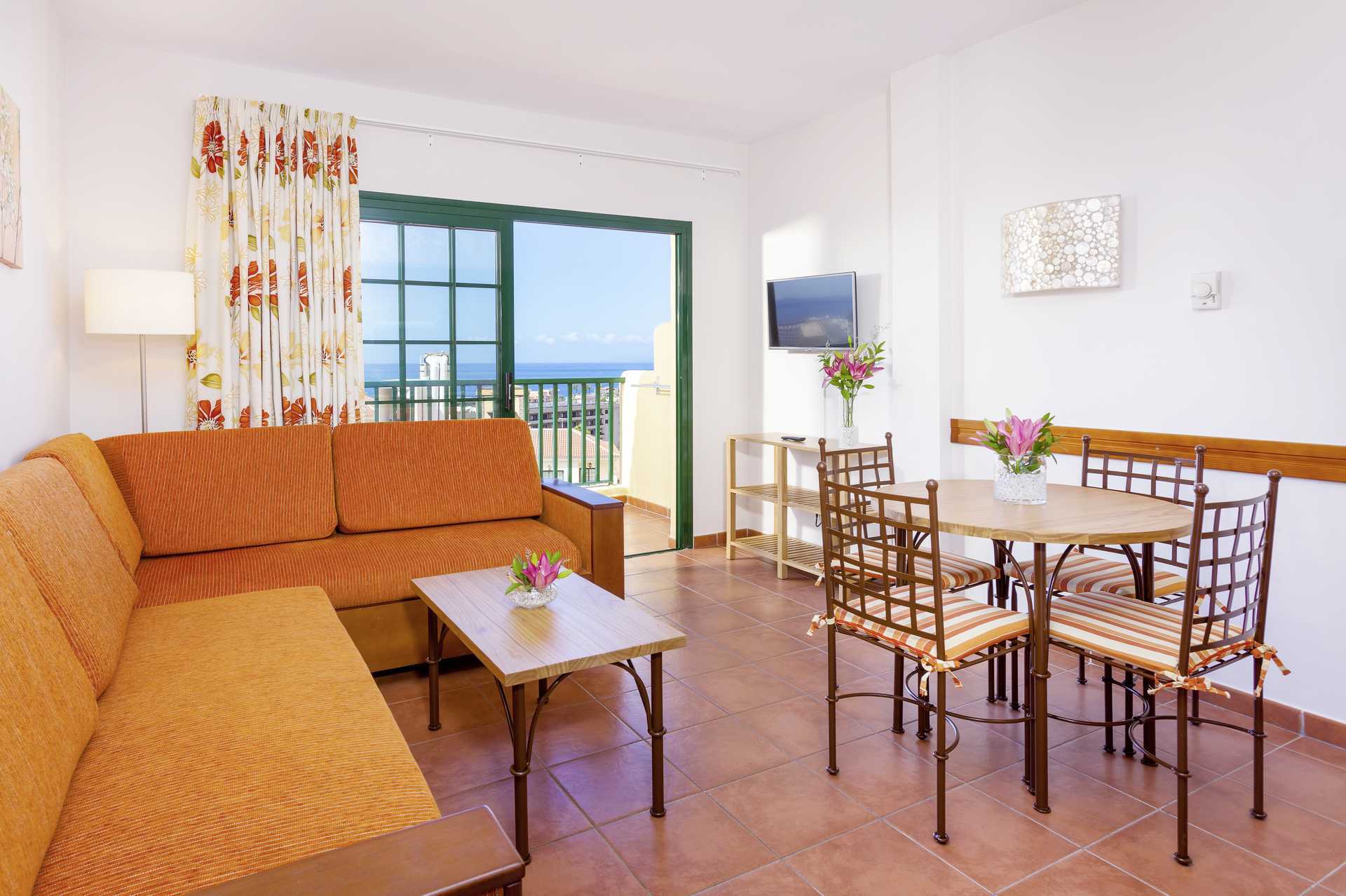 Tvårumslägenhet med balkong eller terrass. Sovrum och kombinerat vardagsrum med minikök. Två enkelsängar. Möjlighet till extrabädd i bäddsoffa. Minikök med kokplattor, kylskåp, mikrovågsugn, kaffebryggare, brödrost och enkel köksutrustning. Wifi och luftkonditionering ingår. Deponering mot avgift. Tv med internationella kanaler. Badrum med badkar och wc. Städning 7 ggr/vecka.