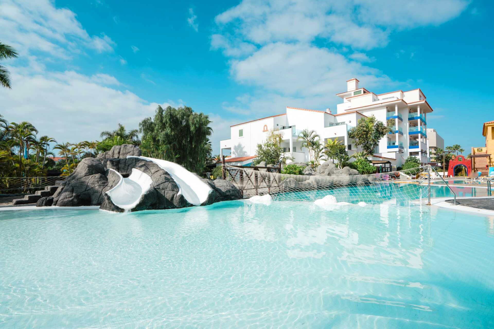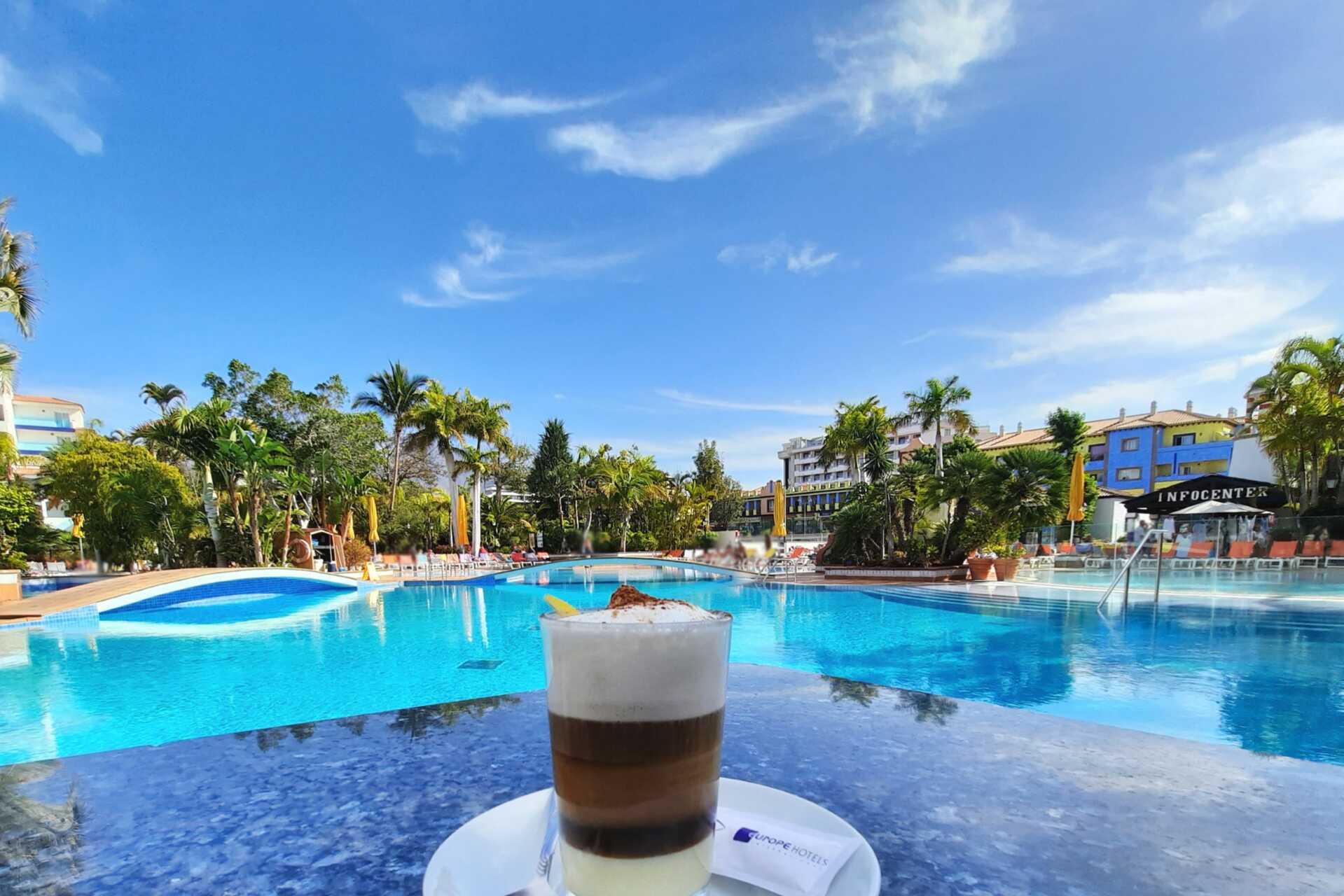 Hotell Park Club Europé ligger i centrala Playa de las Americas och har en grönskande trädgård. Här finns ett stort poolområde med två pooler, en med sötvatten och en med saltvatten, samt en barnpool. En av de stora poolerna är uppvärmd vintertid till minst 22 grader. Pooltemperaturen kan dock sjunka några grader på morgnar, kvällar och vid dåligt väder. Solstolar och parasoller. Poolhanddukar mot avgift. Poolbar.