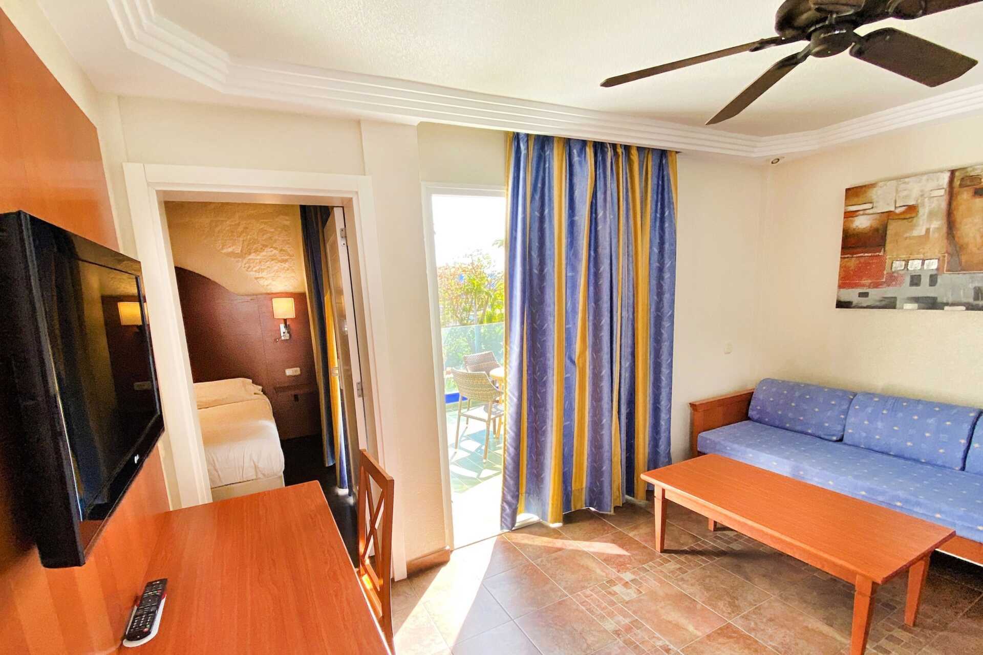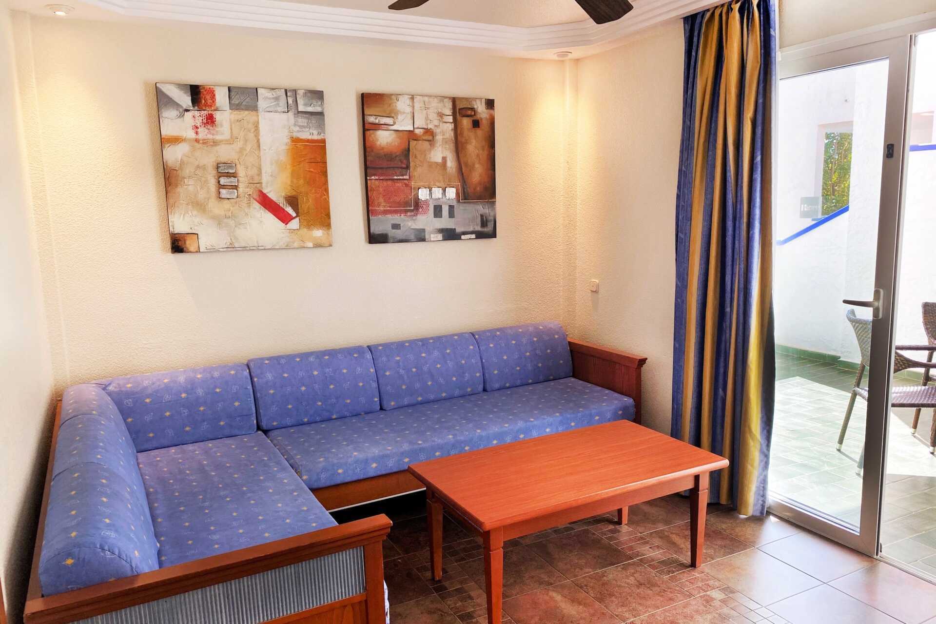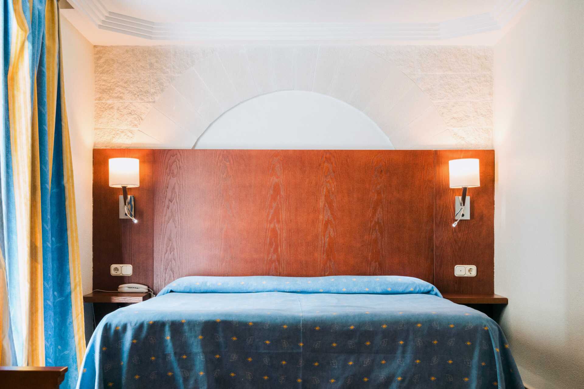 Dubbelrum med balkong eller terrass. Dubbelrummet består av ett sovrum och ett vardagsrum. Två enkelsängar. Möjlighet till extrabädd i bäddsoffa. Wifi ingår. Deponering mot avgift. Takfläkt. Kylskåp. Tv med internationella kanaler. Hårtork. Badrum med dusch och wc. Städning 7 ggr/vecka. Barn under två år räknas in i maxantalet personer i rummet.