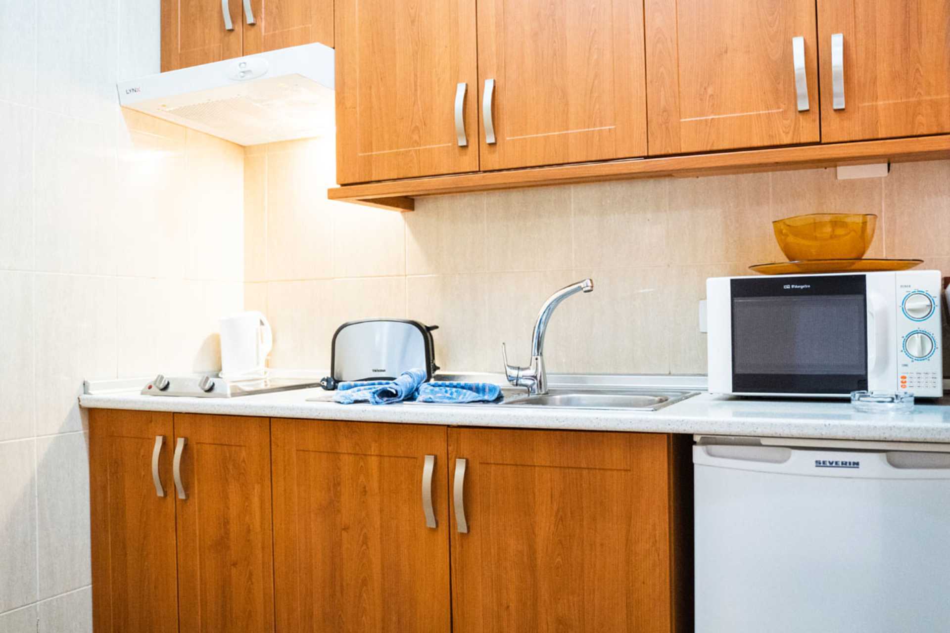 Tvårumslägenhet med balkong, vissa med poolutsikt eller med begränsad havsutsikt. Sovrum och kombinerat vardagsrum/minikök. Två enkelsängar. Möjlighet till extrabädd i bäddsoffa. Minikök med kokplattor, kylskåp, mikrovågsugn, vattenkokare och enkel köksutrustning. Wifi ingår. Deponering mot avgift. Tv med internationella kanaler. Badrum med badkar och wc. Städning 5 ggr/vecka.