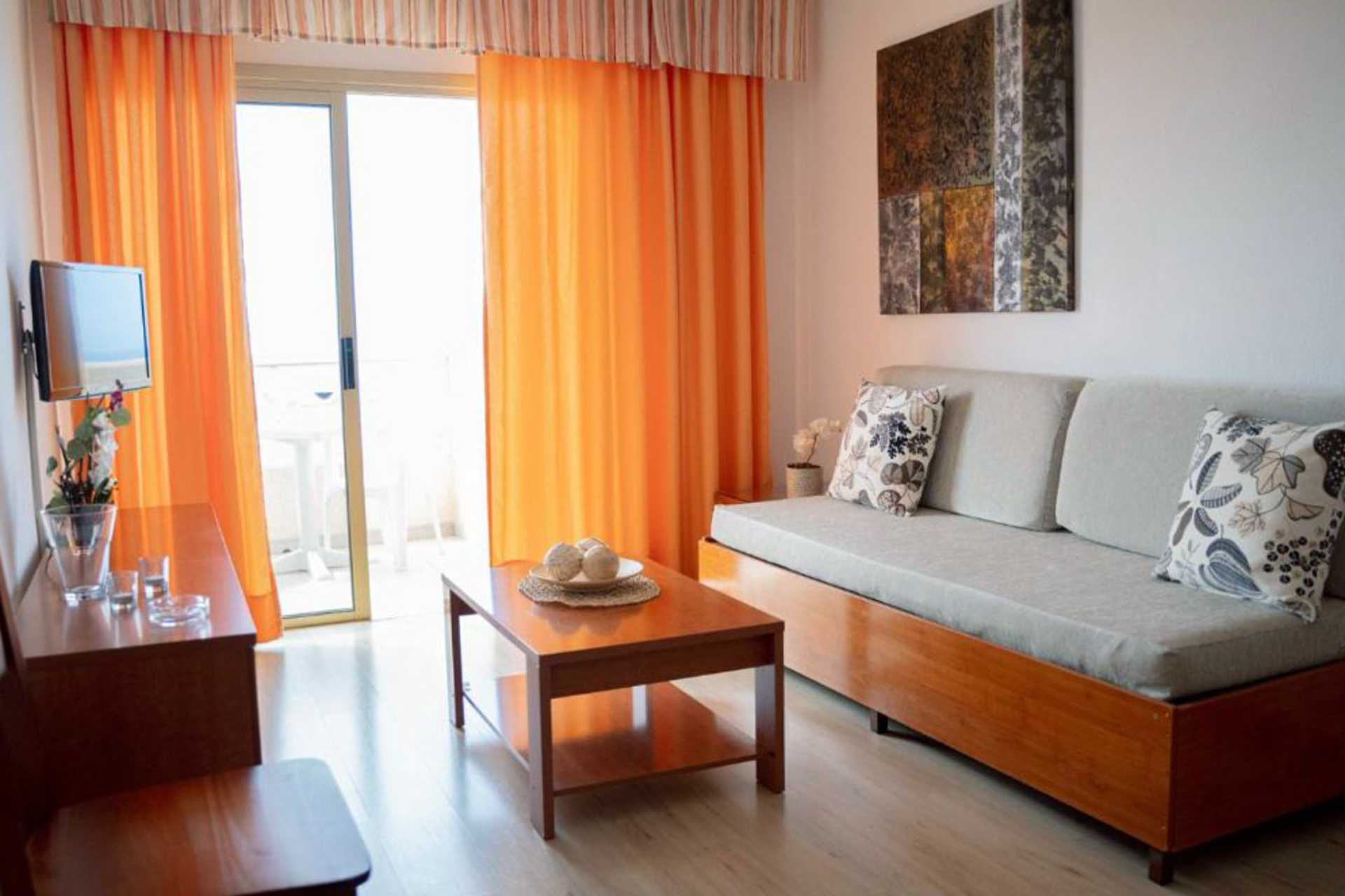 Tvårumslägenhet deluxe med balkong med poolutsikt och eller med begränsad havsutsikt. Cava, nötter och torkad frukt på rummet vid ankomst. Sovrum och kombinerat vardagsrum med minikök. Två enkelsängar. Möjlighet till extrabädd i bäddsoffa. Minikök med kokplattor, kylskåp, mikrovågsugn, vattenkokare och enkel köksutrustning. Wifi ingår. Deponering mot avgift. Tv med internationella kanaler. Hårtork. Badrum med badkar och wc. Städning 5 ggr/vecka.
