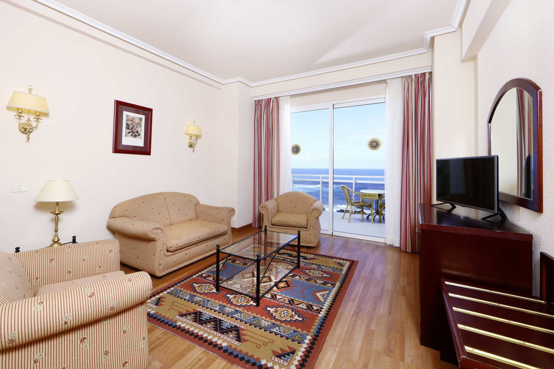 Juniorsvit med balkong som vetter mot trädgården och har utsikt mot trädgården, Teide eller havet. Juniorsviterna ligger i huvudbyggnaden. Vardagsrum med sittgrupp och ett sovrum med en dubbelsäng eller två enkelsängar. Öppen planlösning mellan rummen. Möjlighet till extrabäddar i befintliga sängar. Wifi och luftkonditionering ingår. Deponering mot avgift. Minibar mot avgift. Tv med internationella kanaler. Hårtork. Badrum med bad/dusch (några med sittbadkar) och wc. Städning 7 ggr/vecka.