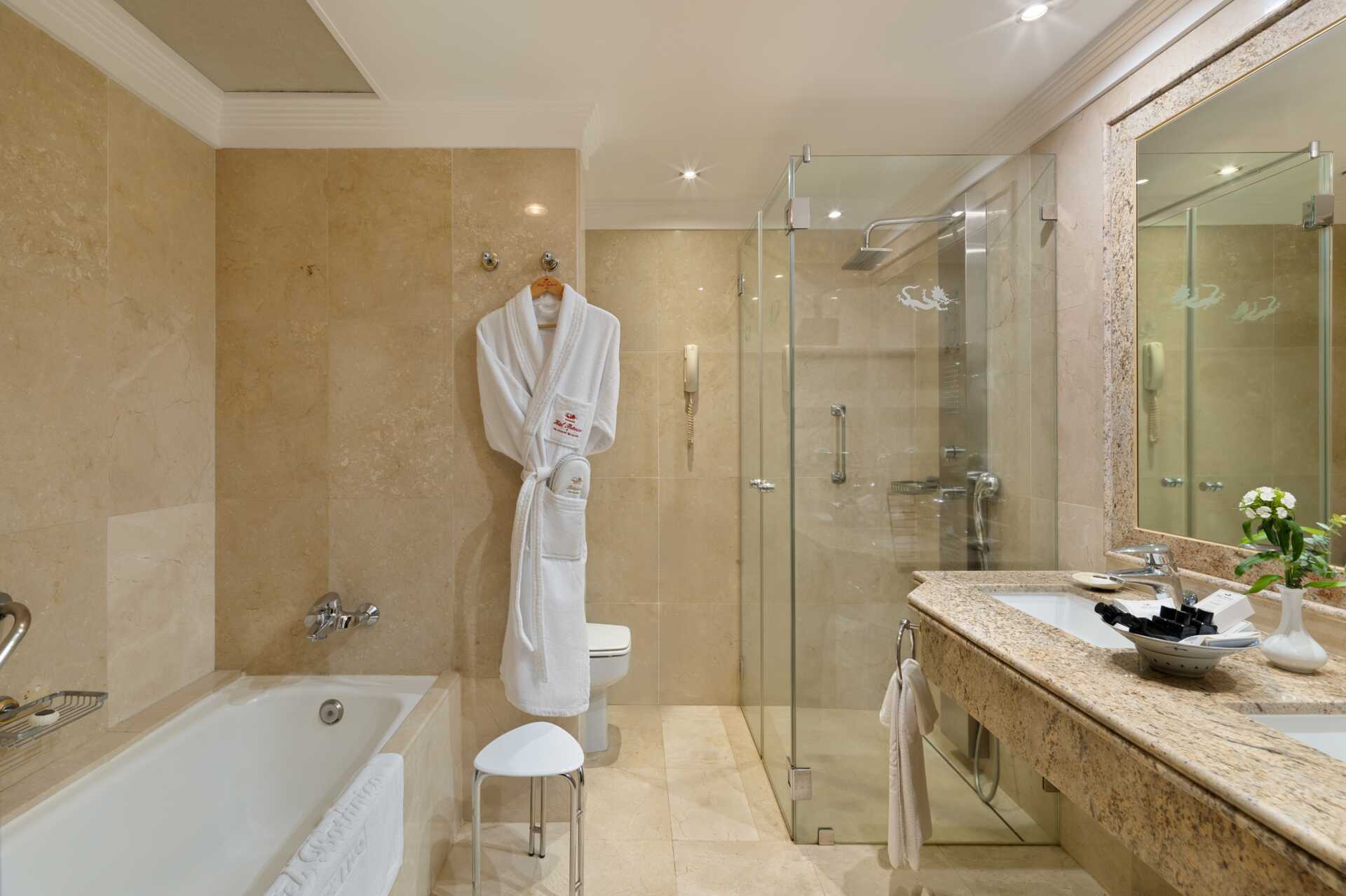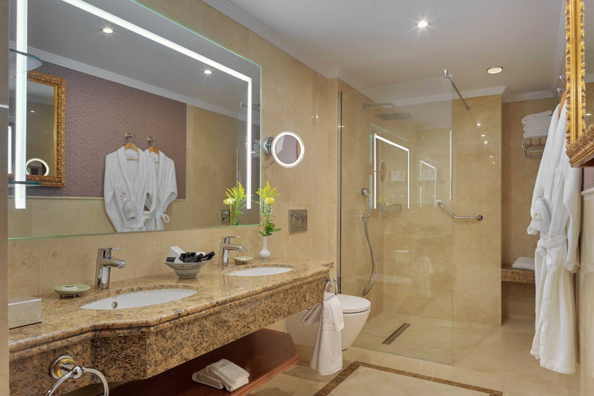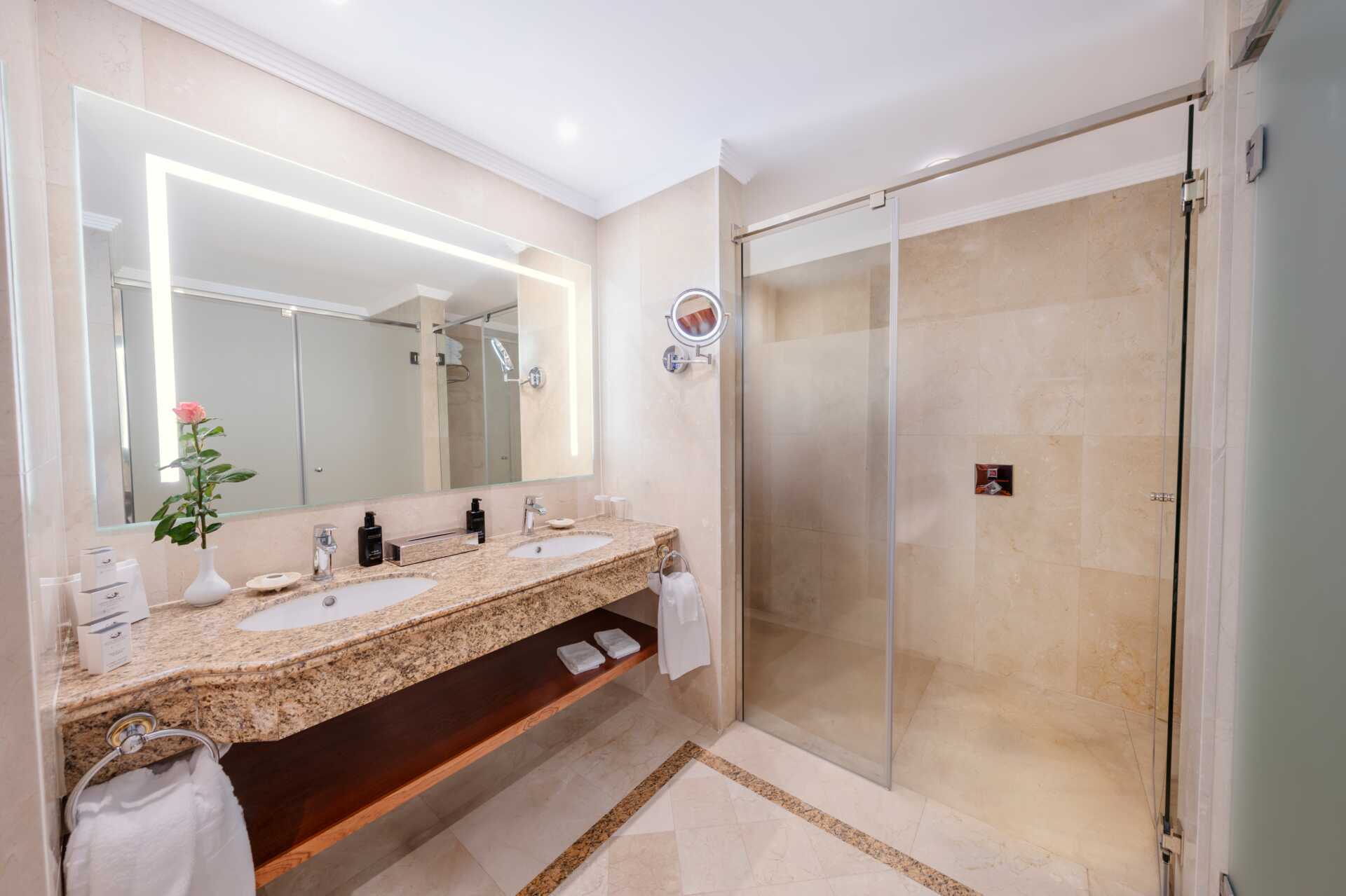Sviter med balkong. En dubbelsäng eller två enkelsängar. Möjlighet till extrabädd i bäddsoffa. Kuddmeny. Soffa och fåtöljer. Wifi, luftkonditionering och deponering ingår. Minibar. Nespresso kaffemaskin - kapslar ingår och fylls på dagligen. Vattenkokare samt kaffe och te. Tv med internationella kanaler och Chromecast. Några sviter har heltäckningsmatta. Badrockar och tofflor. Hårtork. Badrum med badkar och dusch, separat dusch samt wc. Städning 7 ggr/vecka.