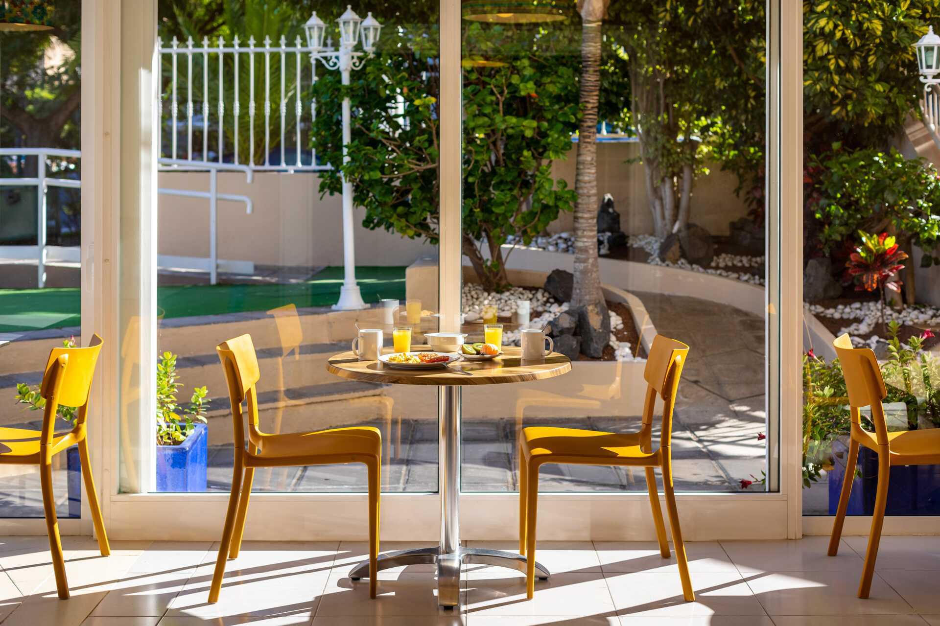På hotellet finns en restaurang som serverar frukost samt en lounge. Vill du vara aktiv på din semester så finns ett fullt utrustat gym på hotellet.