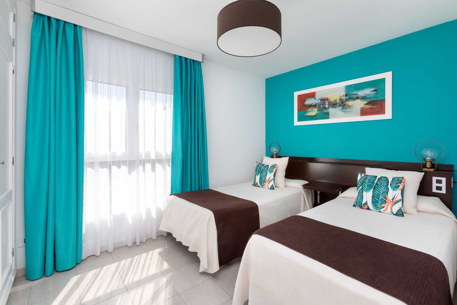 Trerumslägenhet med balkong. Två sovrum och kombinerat vardagsrum med minikök. En dubbelsäng och en enkelsäng eller tre enkelsängar. Möjlighet till extrabädd för en fjärde person i bäddsoffa. Minikök med kokplattor, kylskåp, mikrovågsugn, brödrost, kaffebryggare och enkel köksutrustning. Wifi ingår. Deponering mot deposition och avgift. Tv med internationella kanaler. Hårtork. Badrum med dusch och wc. Städning 5 ggr/vecka.