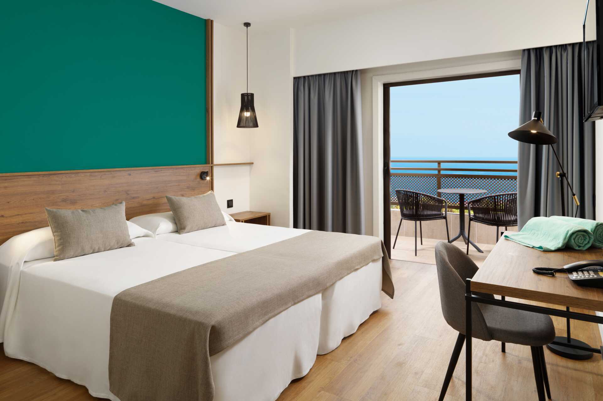 Superiorrum med balkong, vissa med begränsad havsutsikt. Två enkelsängar. Möjlighet till extrabädd i bäddsoffa. Wifi och deponering mot avgift. Deponering mot avgift. Kylskåp. Tv med internationella kanaler. Tofflor. Hårtork. Badrum med badkar och wc. Städning 5 ggr/vecka.