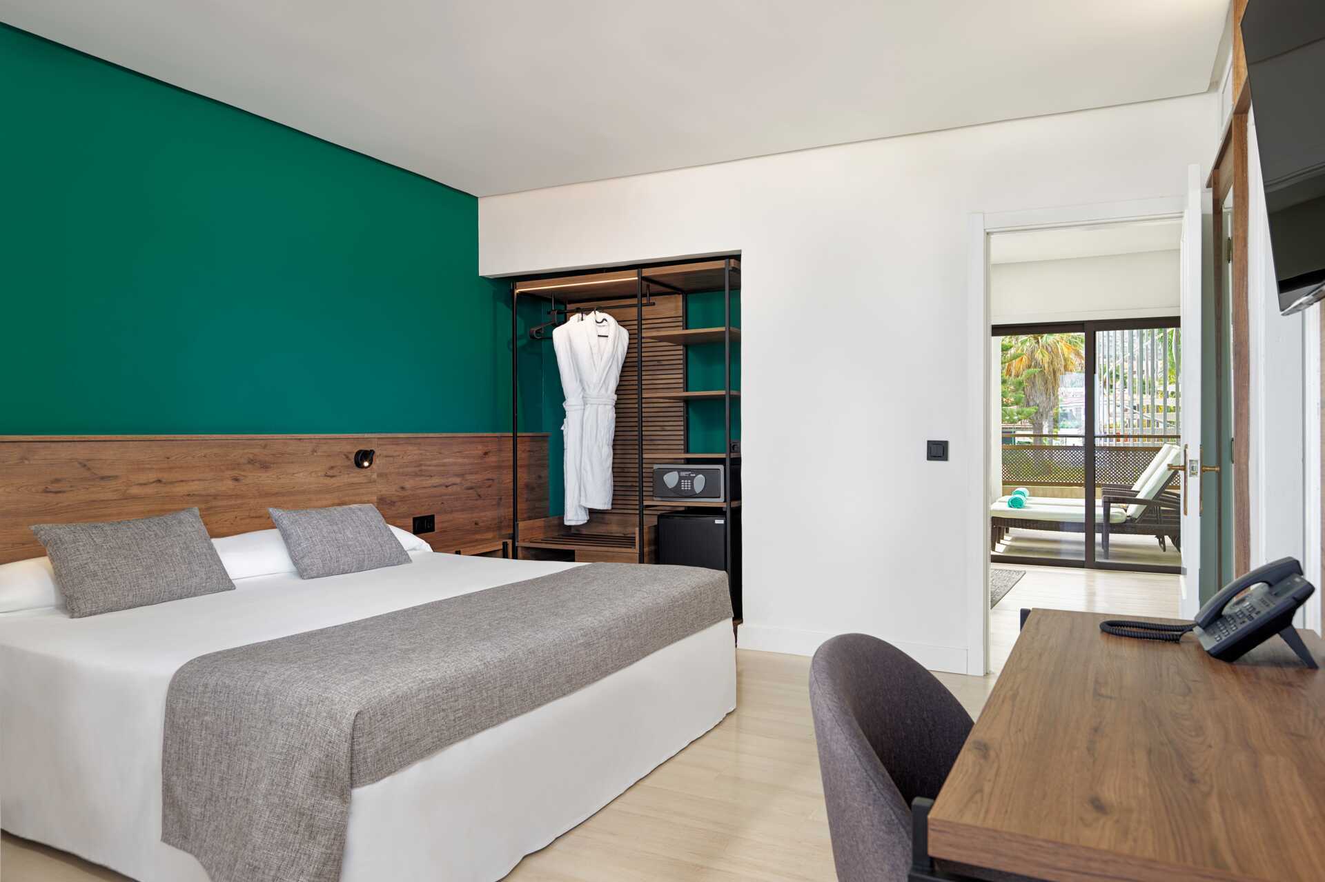 Juniorsvit med balkong. En dubbelsäng eller två enkelsängar. Möjlighet till extrabäddar i bäddsoffa. Wifi och luftkonditionering ingår. Deponering mot avgift. Kylskåp. Tv med internationella kanaler. Tofflor. Hårtork. Badrum med dusch och wc. Städning 5 ggr/vecka.