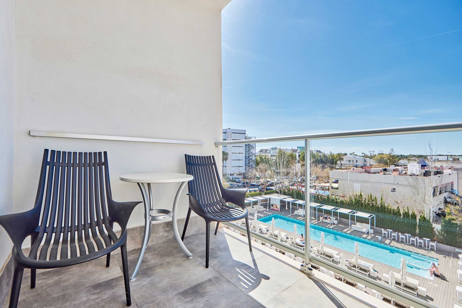 Deluxerum med balkong och poolutsikt eller med stor balkong eller terrass med poolutsikt. Rummen med balkong ligger på våning 5–6. Rummen med stor balkong eller terrass ligger på våning 1 och på uteplatsen finns stolar och bord samt en stor skön balisäng. En dubbelsäng. Wifi, luftkonditionering och deponering ingår. Kylskåp. Vattenkokare. Nespressomaskin - kapslar ingår vid ankomsten. Tv med internationella kanaler. Badrockar och tofflor. Hårtork. Badrum med dusch och wc. Städning 7 ggr/vecka.