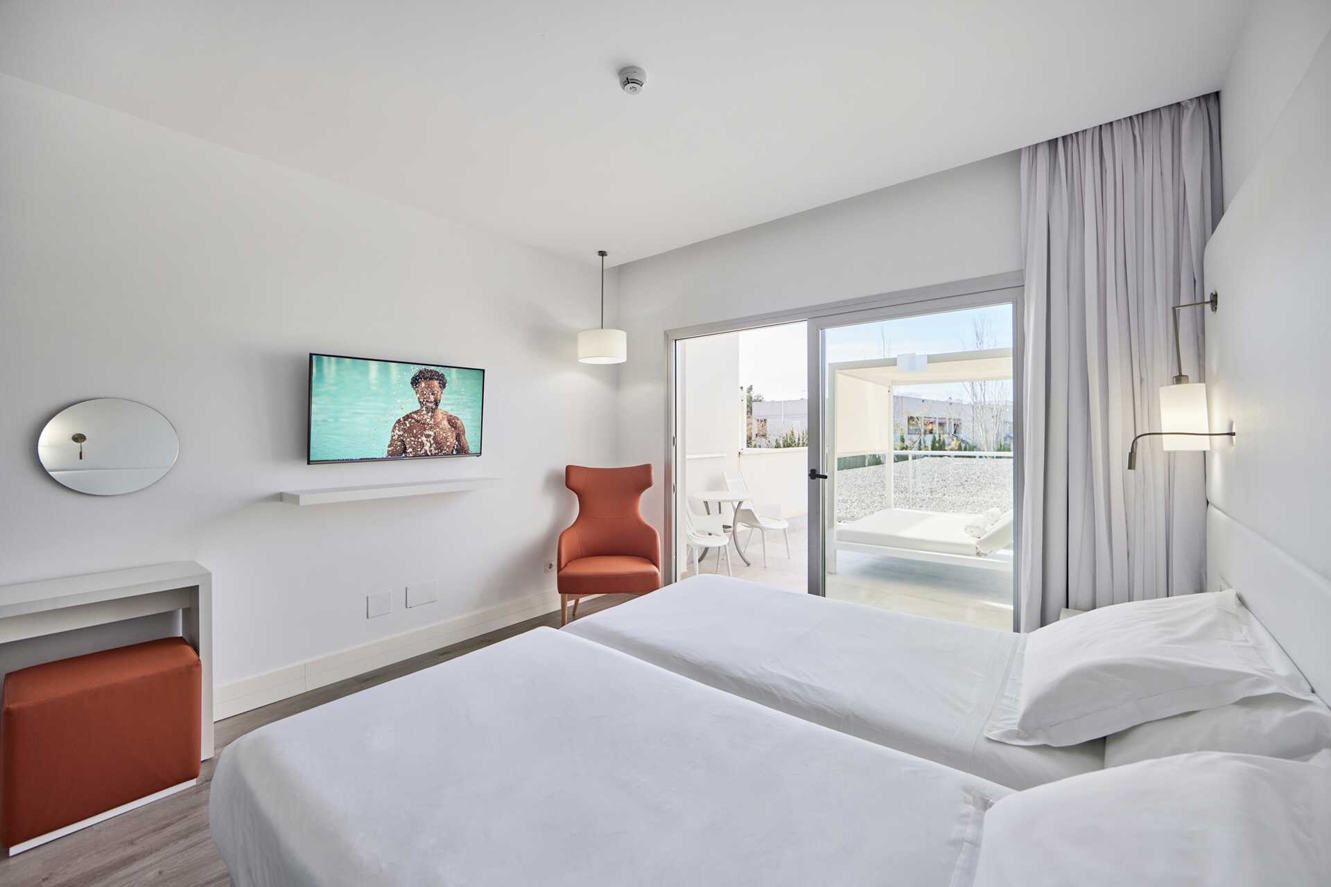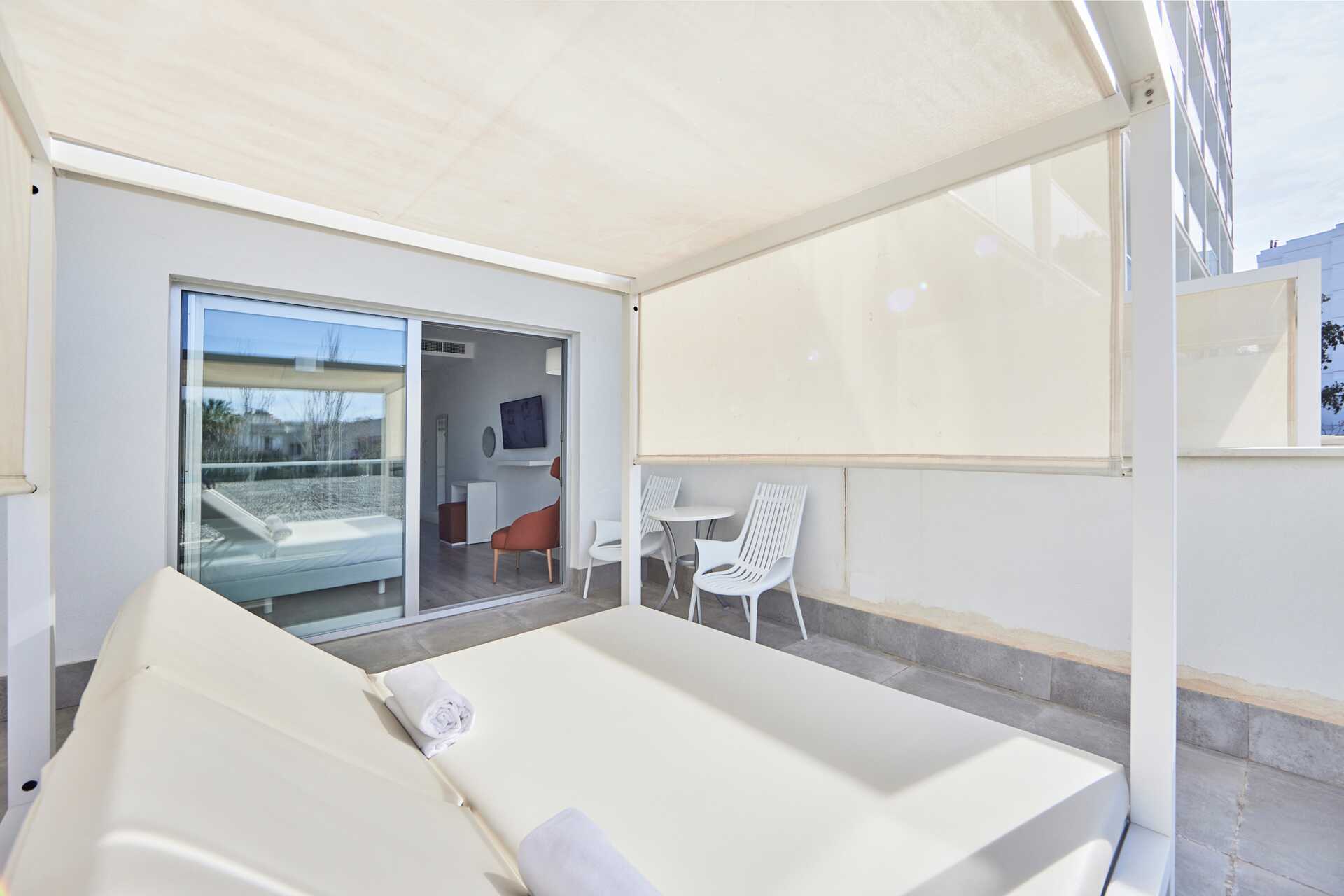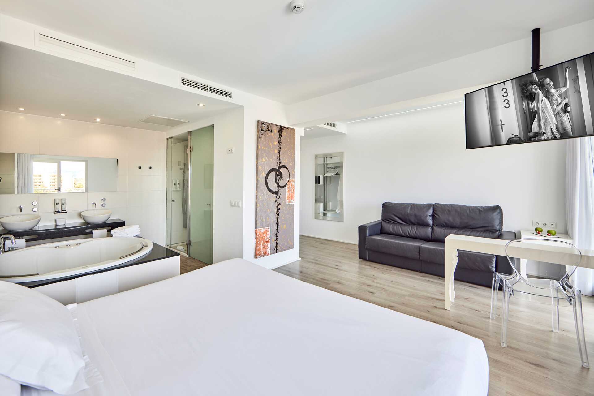 Juniorsvit deluxe med balkong och poolutsikt. Sviterna ligger på våning 1-6. En dubbelsäng. Wifi, luftkonditionering och deponering ingår. Kylskåp. Vattenkokare. Nespressomaskin - kapslar ingår vid ankomsten. Tv med internationella kanaler. Badrockar och tofflor. Öppen planlösning till badrummet med hårtork, jacuzzibadkar, separat dusch samt wc. Städning 7 ggr/vecka.