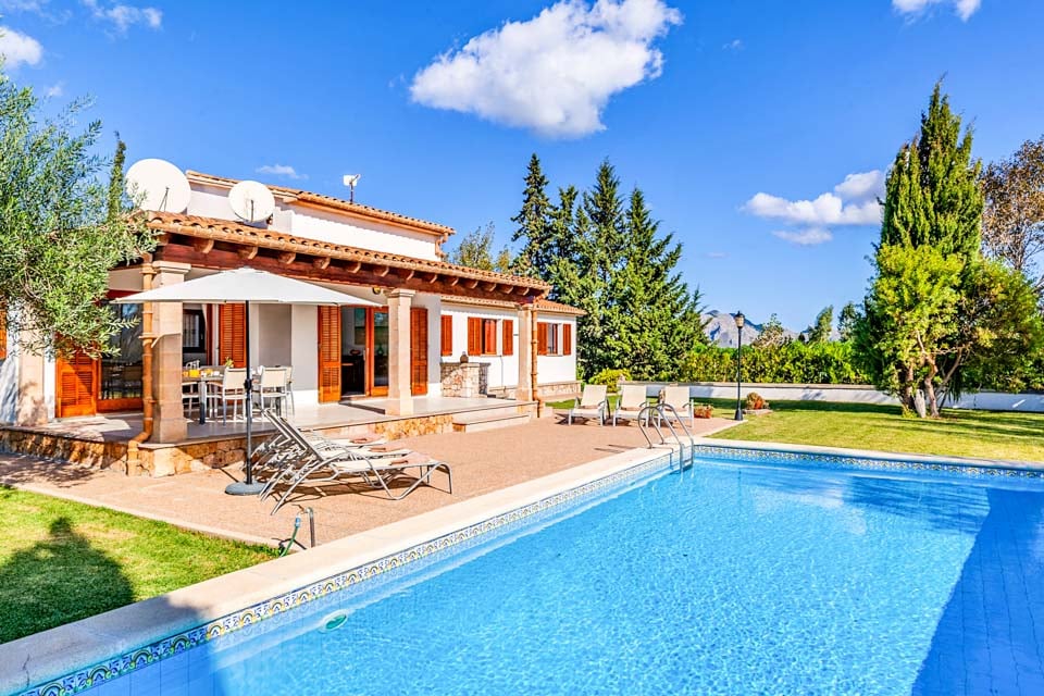 Utomhus har villan en stor privat pool, perfekt för avkoppling eller avsvalkning efter en dag med utforskande av de närliggande stränderna. Solstolar omger poolen och är en idealisk plats för att njuta av det mallorkinska solskenet. För de som älskar att äta utomhus finns det en traditionell grill, perfekt för att njuta av måltider utomhus med familj och vänner.