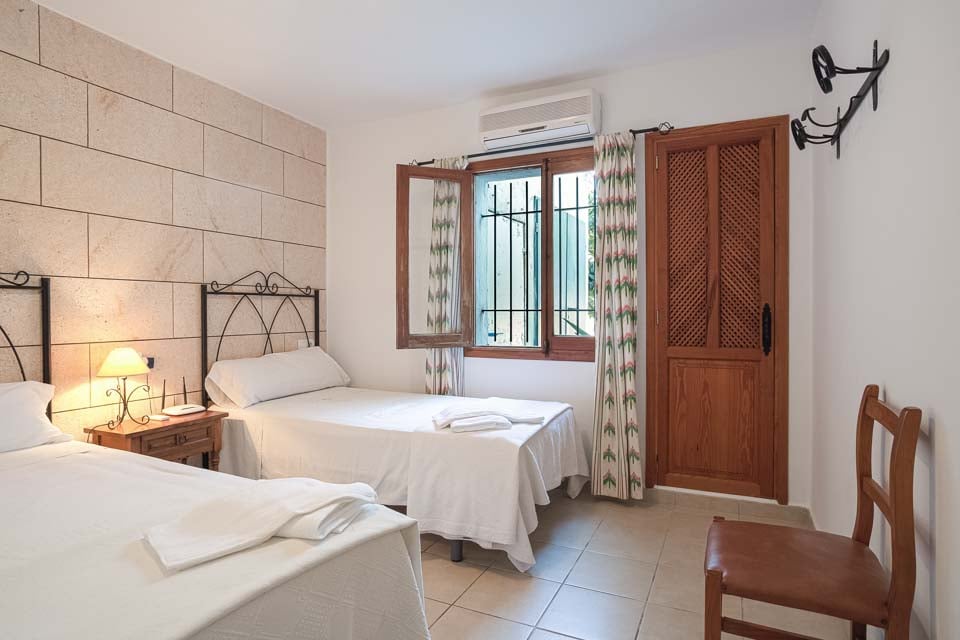 Enkelsängar, luftkonditionering, balkong, dörrar till terrass
