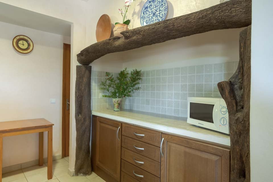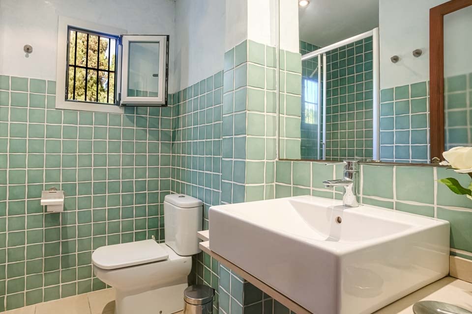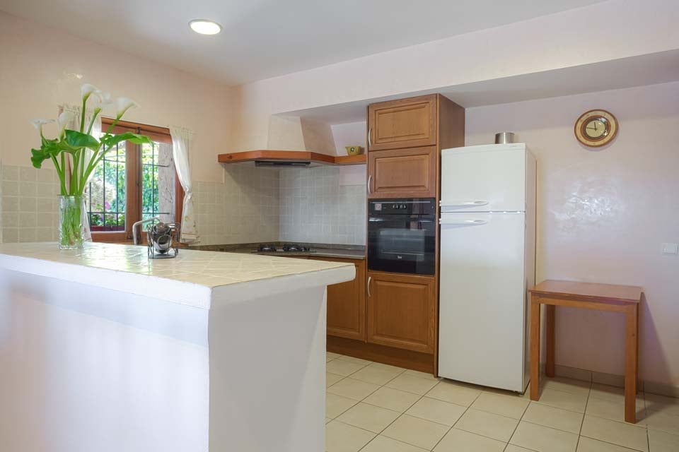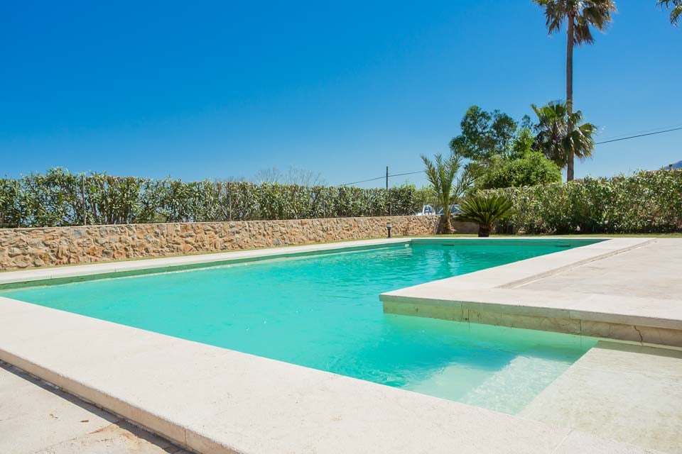 Utomhus finns en skuggig, täckt terrass med uteservering och bordtennisbord för tävlingsgäster. Ett ytterligare täckt område med en tegelgrill och ett litet kylskåp ligger vid sidan av trädgården. Den verkliga pärlan i denna villa är den glittrande poolen, omgiven av solstolar och några palmer. På tomten finns också en bubbelpool för den ultimata avkopplingen när solen går ner.