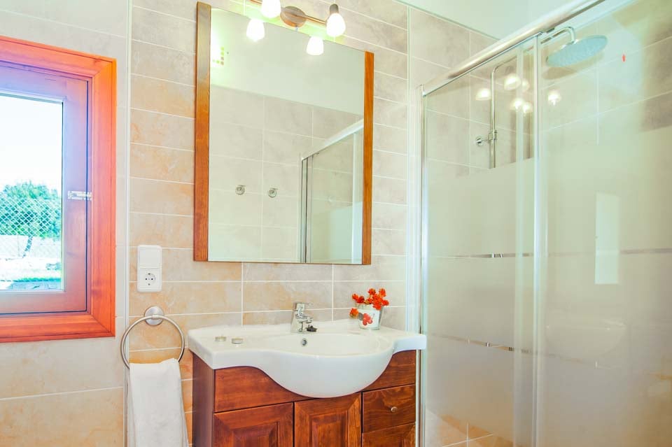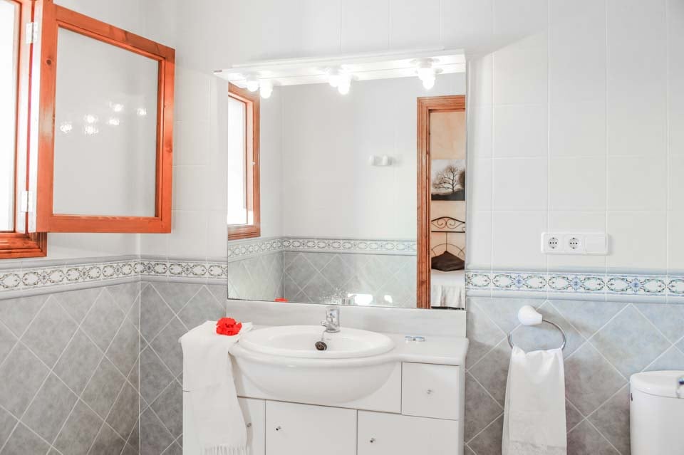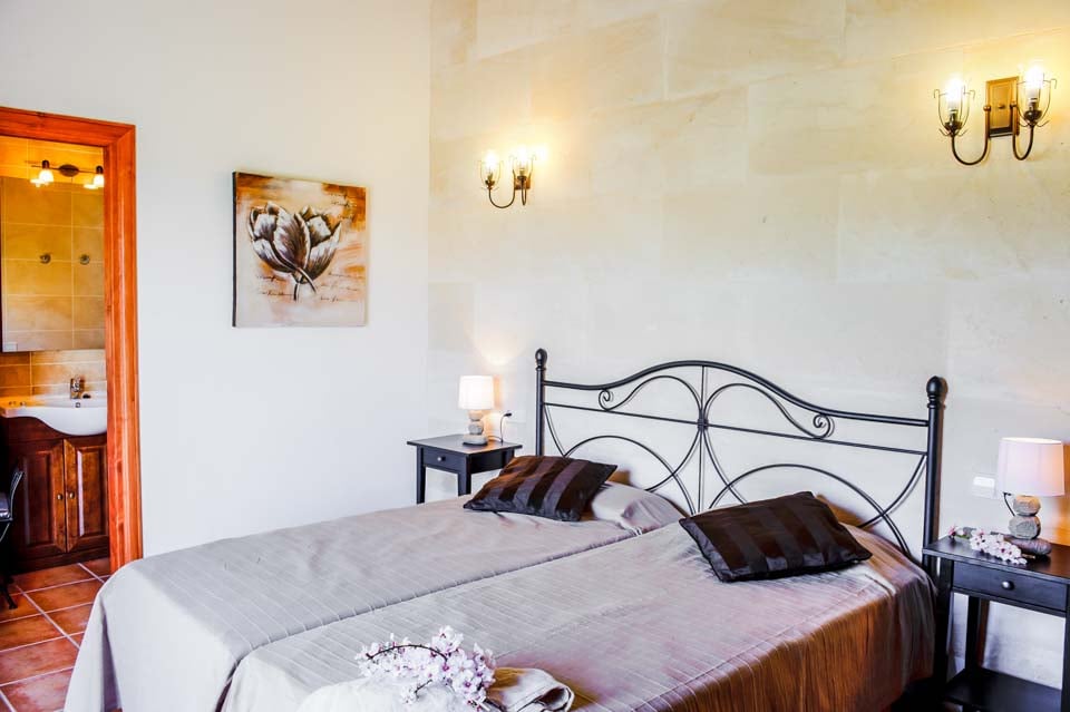 Detta tvåvåningshus har bevarat sin traditionella lantliga charm. När du kommer in i villan välkomnas du av ett vackert inrett stort vardagsrum med matplats som har en riktigt trevlig hemtrevlig känsla. På denna våning finns också ett välutrustat rymligt kök med bord och stolar för att njuta av frukost. Det finns också två sovrum på bottenvåningen, två tvåbäddsrum med eget duschrum och ett med dörrar till terrassen. Trappan leder till första våningen där det tredje sovrummet ligger, detta är ett riktigt rymligt dubbelrum med eget badrum. Detta sovrum har en stor balkong med utsikt över poolområdet med underbar utsikt över den omgivande landsbygden.