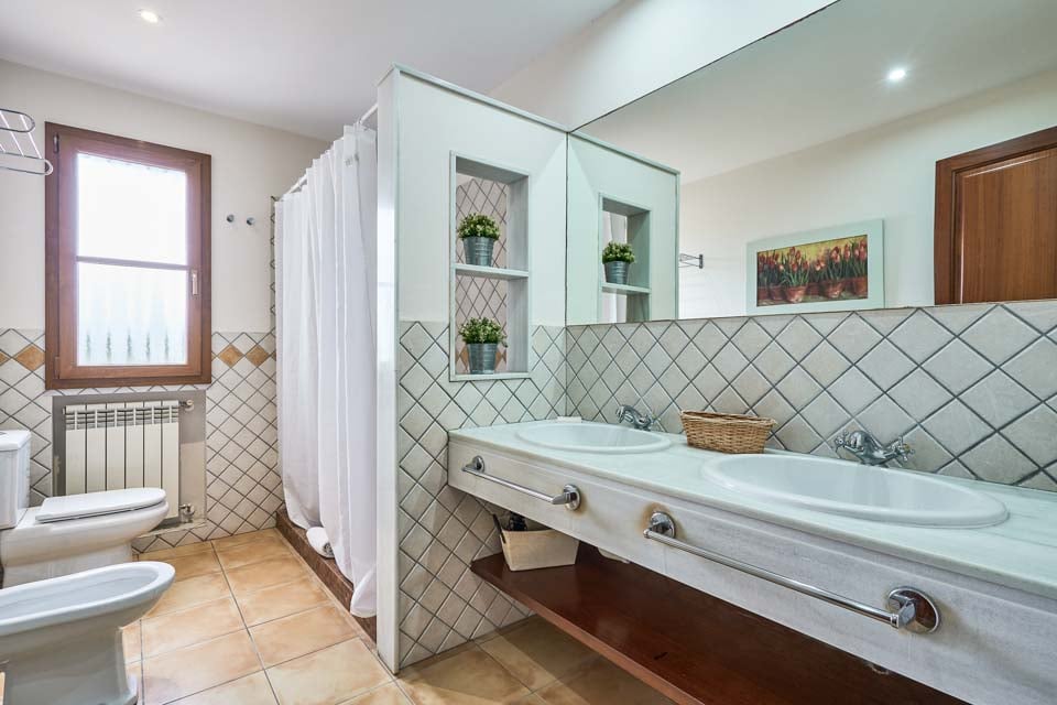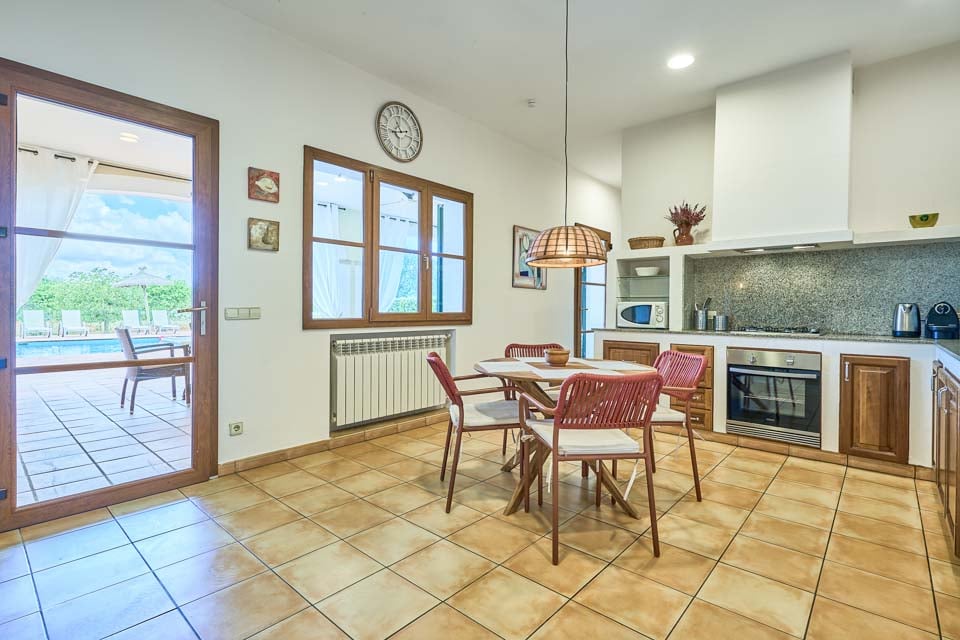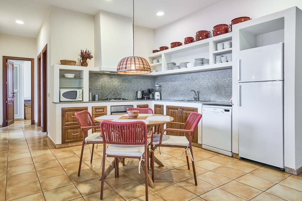 Denna vackra villa är extremt rymlig och erbjuder en lugn, avslappnad atmosfär med neutral inredning och bekväma möbler. Vardags-/matsalen har ett imponerande matbord i massiv ek med plats för tolv personer och öppnar direkt mot den stora poolterrassen. Ett fullt utrustat kök finns också på denna våning med ett skafferi och altandörrar som öppnar ut mot grillplatsen vilket gör utomhuslivet till en barnlek. Två tvåbäddsrum finns också på denna våning som delar två badrum.