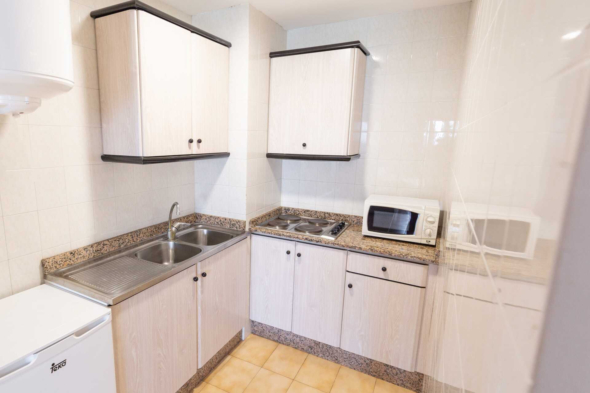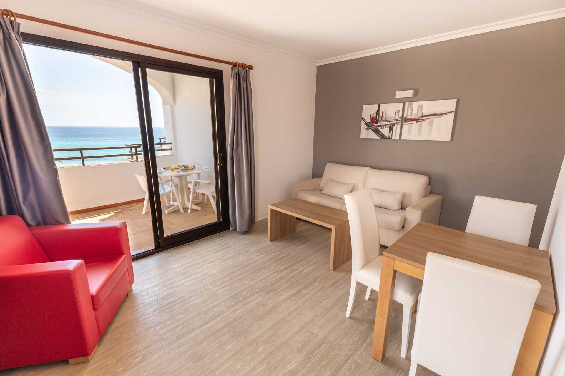 Trerumslägenhet med balkong, vissa med havsutsikt. Två sovrum och kombinerat vardagsrum/minikök. Två enkelsängar i varje sovrum. Möjlighet till extrabäddar i en bäddsoffa. Minikök med kokplattor, kylskåp, mikrovågsugn, vattenkokare, brödrost, kaffebryggare och enkel köksutrustning. Wifi och deponering mot avgift. Takfläkt. Tv med internationella kanaler. Hårtork. Badrum med badkar och wc. Städning 5 ggr/vecka.