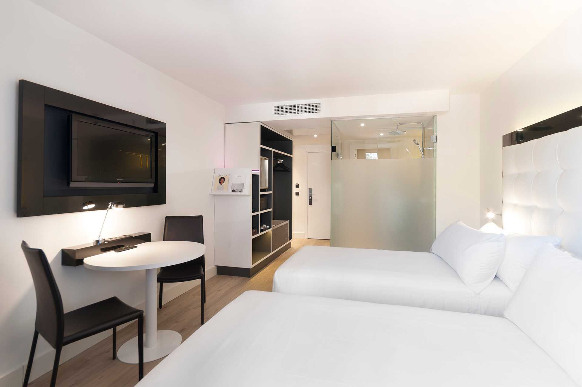 Dubbelrum, utan uteplats. En dubbelsäng eller två enkelsängar. Wifi, luftkonditionering och deponering ingår. Minibar. Vattenkokare. Tv med internationella kanaler. Hårtork. Badrum med dusch och wc. Städning 5 ggr/vecka.