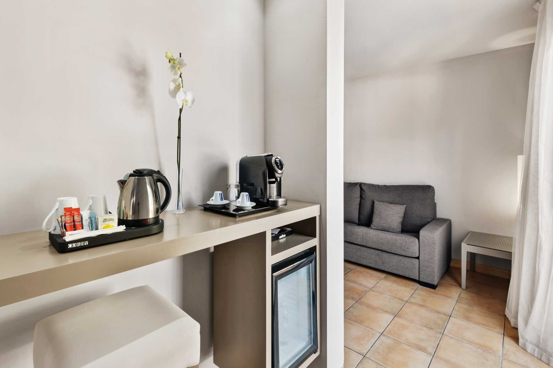 Deluxerum med balkong eller terrass. Deluxerummet består av en sovrumsdel och en vardagsrumsdel med öppen planlösning. En dubbelsäng eller två enkelsängar. Möjlighet till två extrabäddar i en bäddsoffa. Kuddmeny. Wifi och luftkonditionering ingår. Deponering mot avgift. Minibar. Vattenkokare samt kaffe och te. Espresso kaffemaskin. Poolhanddukar ingår. Hårtork. Badrum med dusch och wc. Städning 5 ggr/vecka.