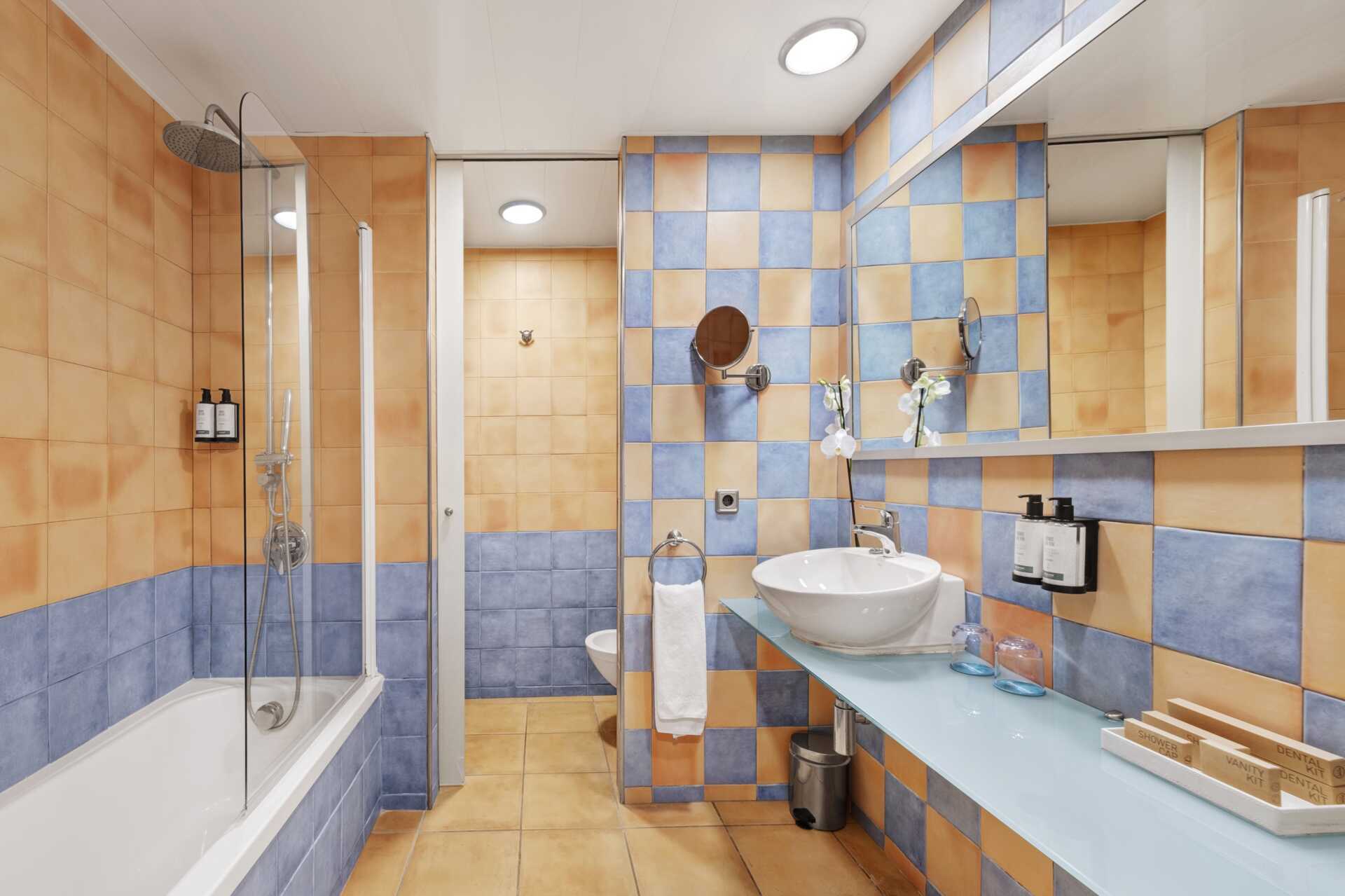 Superiorrum med balkong eller terrass. Två enkelsängar. Wifi och luftkonditionering ingår. Deponering mot avgift. Minibar. Vattenkokare samt kaffe och te. Hårtork. Badrum med badkar och wc. Städning 5 ggr/vecka.